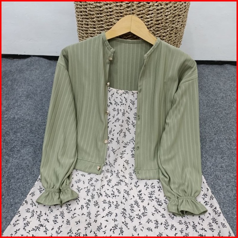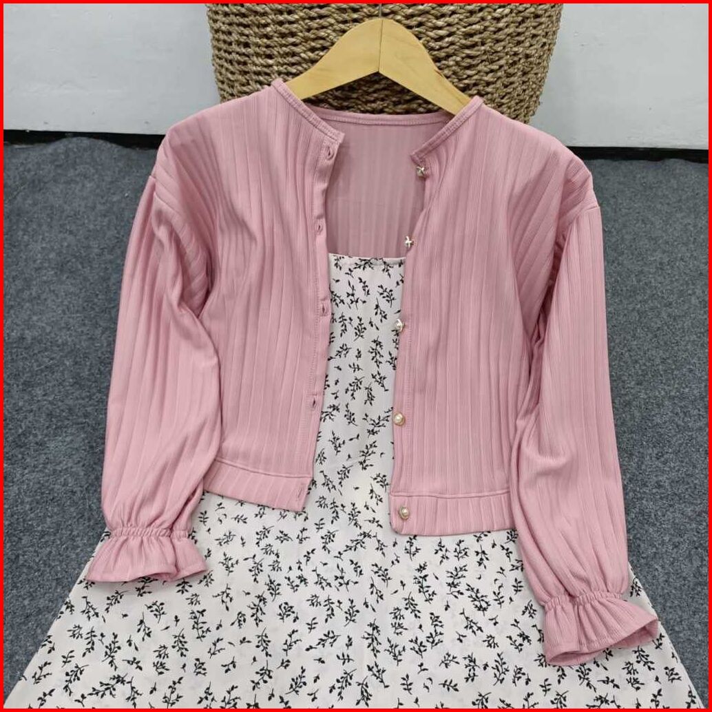 Setelan Cardigan Knit Hornet Crop Dan Overall Motif Bunga Floral Korean Style 2 In 1 Set Cardi Oneset Kekinian Cardigan