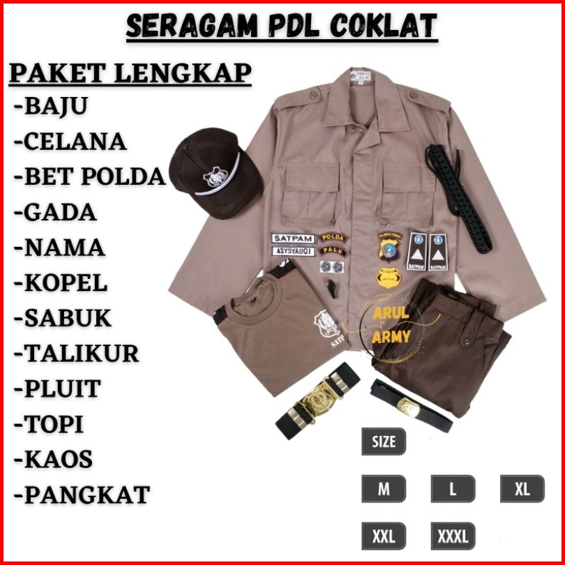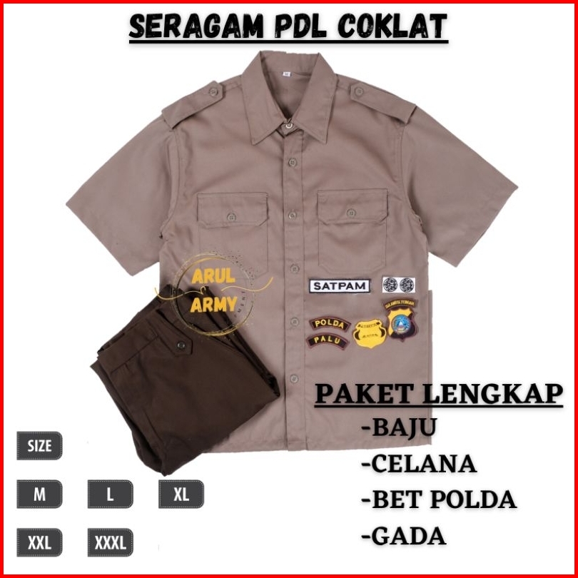 Baju Seragam Setelan Satpam Security Pdh Pdl Coklat Terbaru Krem Paket Lengkap Seragam Satpam
