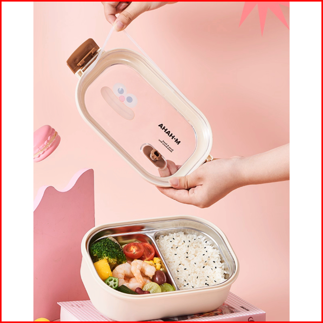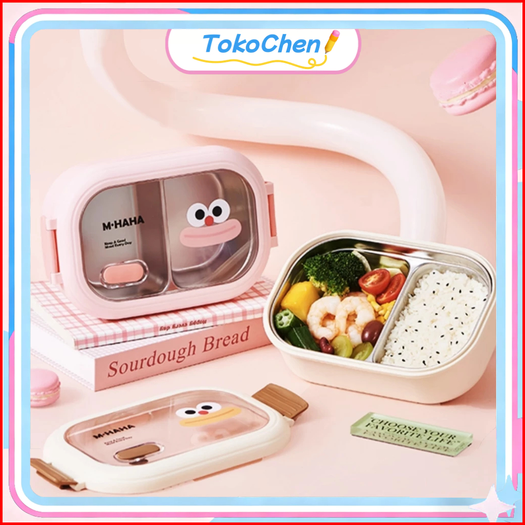 Lunch Box Stainless 2 Grid Besar Portabel Kotak Bekal Anti Tumpah Tahan Panas Kotak Makan