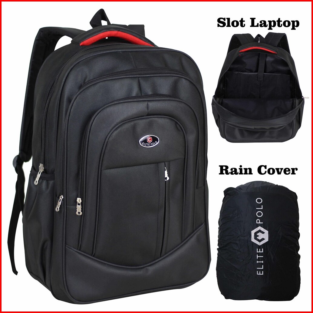 Tas Ransel Polo Pria Bahan Tebal Awet Premium Tas Punggung Pria Elite Polo Resleting Depan Warna Hitam Backpack Smp Sma