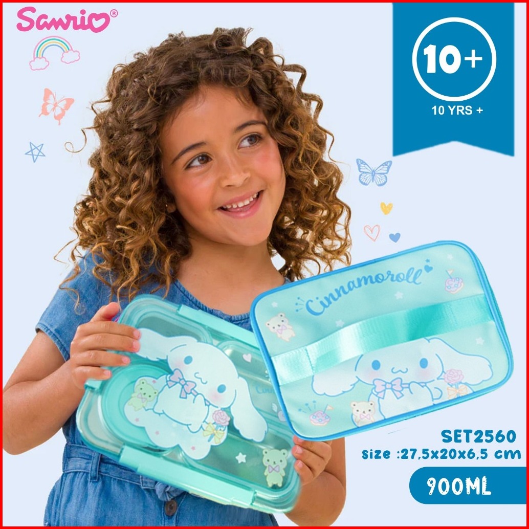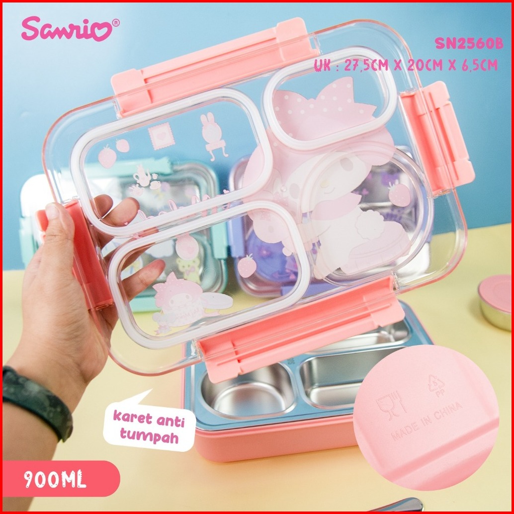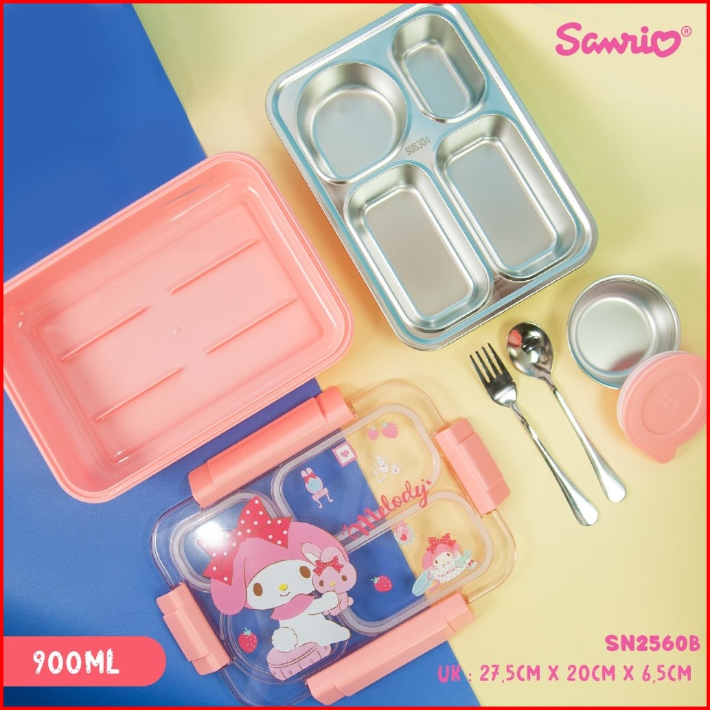 Marvel-sanrio Set Dengan Tas Bento Besar Stainless 304 Sekat 4 With Mangkok Soup Stainless 900ml Sn2560