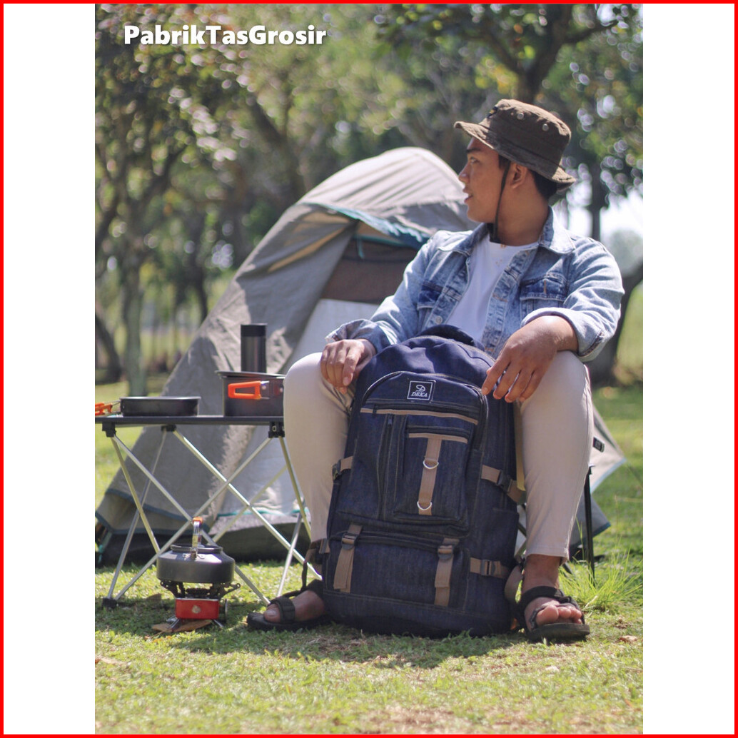 Carrier Gunung 40ltr Kanvas Denim Tas Gunung Muncak Mendaki Ransel Camping Hiking Super Kuat