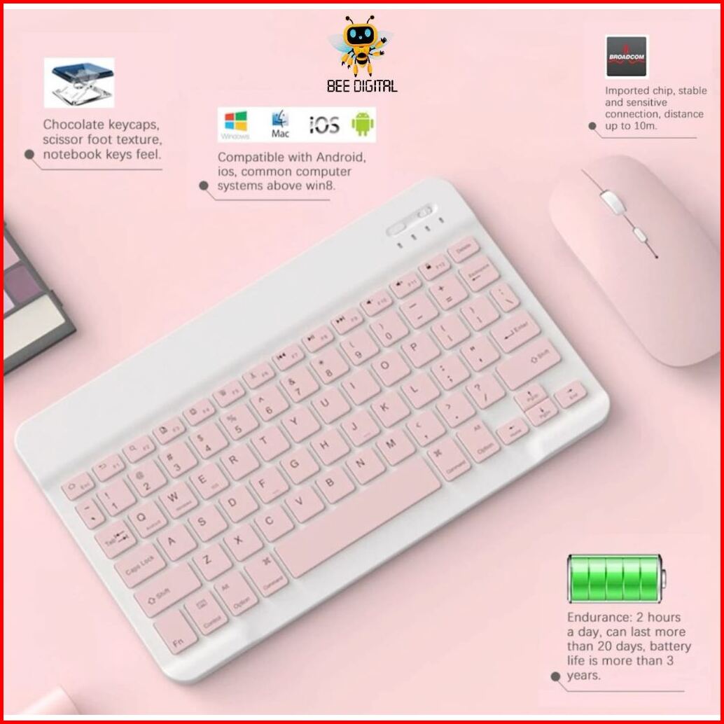 Beedigital 3in1 Bundle Wireless Set Mouse Keyboard Portable Bluetooth Lightweight Silent Click Colorful Fullset