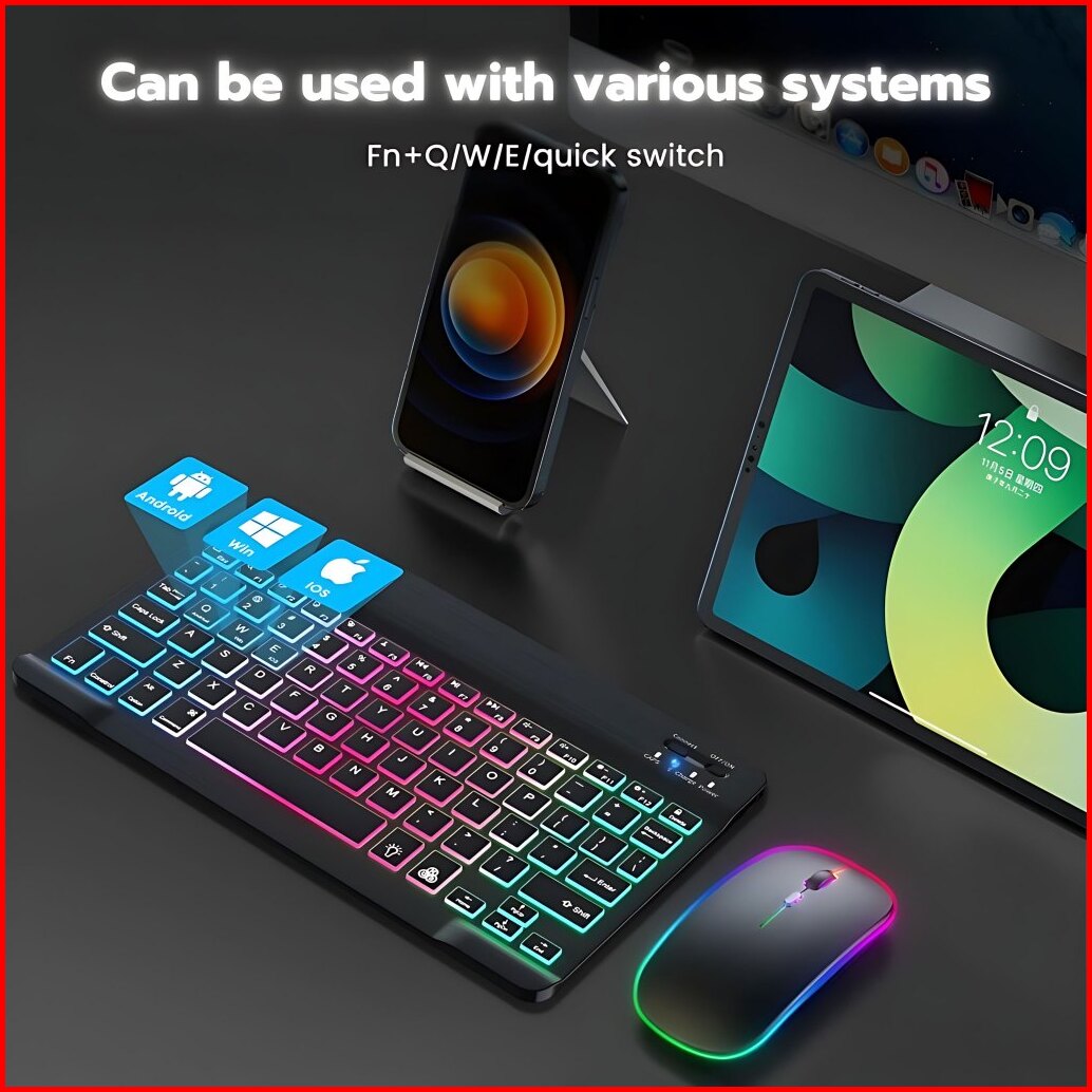 10 Inch Rgb Backlit Wireless Keyboard Ipad Bluetooth Keyboard Mouse Set