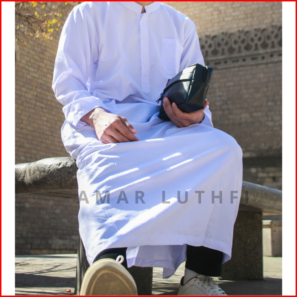 Jubah Pria Gamis Pria Dewasa Hitam Putih Warna Polos Model Thobe Saudi
