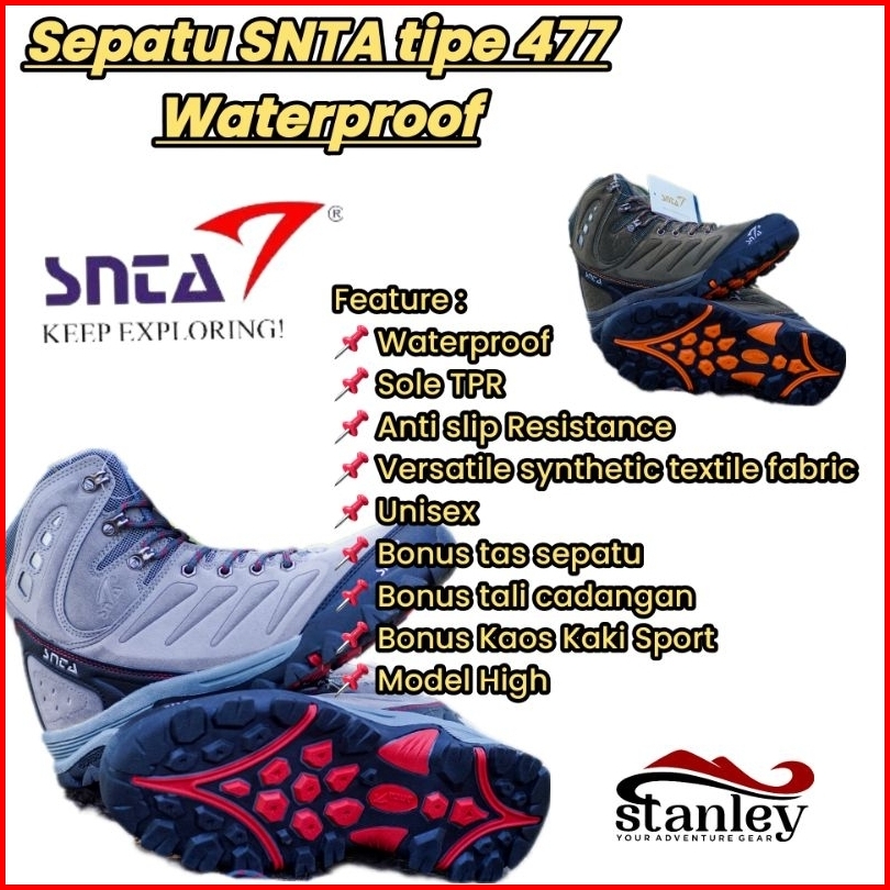 Sepatu Snta High Tipe 477 Waterproof Bonus Tali Cadangan Dan Kaos Kaki Sepasang Serta Ada Sepatu Snta High Tipe 499 Wate