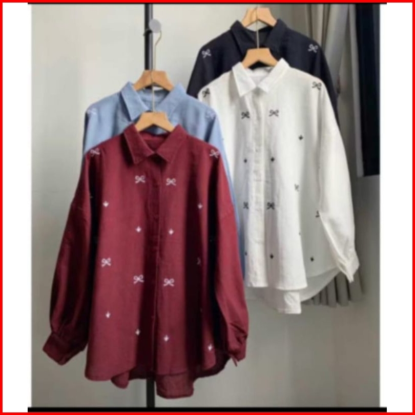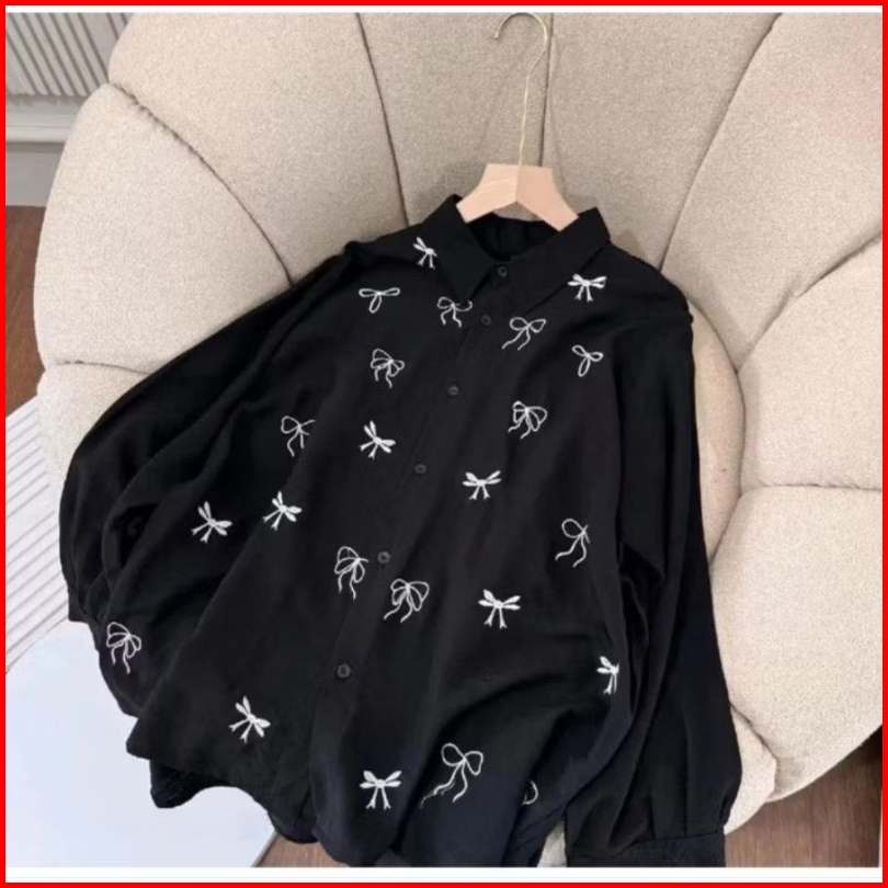 Kemeja Shirt Bordir Black Swhite Bahan Crinkle Terbaru