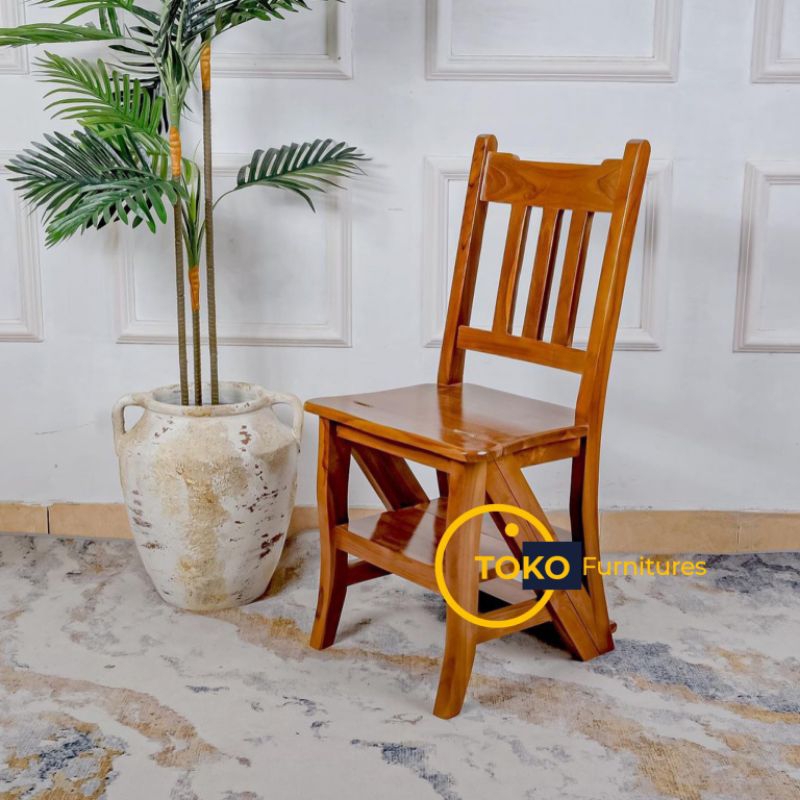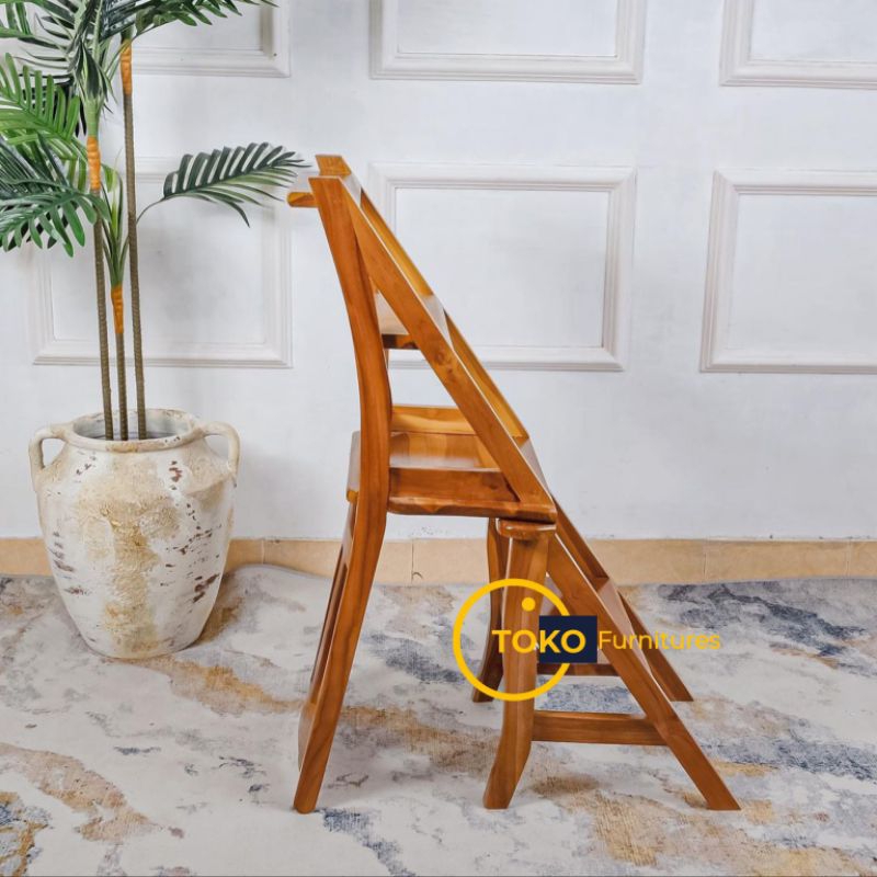 KURSI TANGGA LIPAT KAYU JATI Kursi Lipat 3in1 Multifungsi