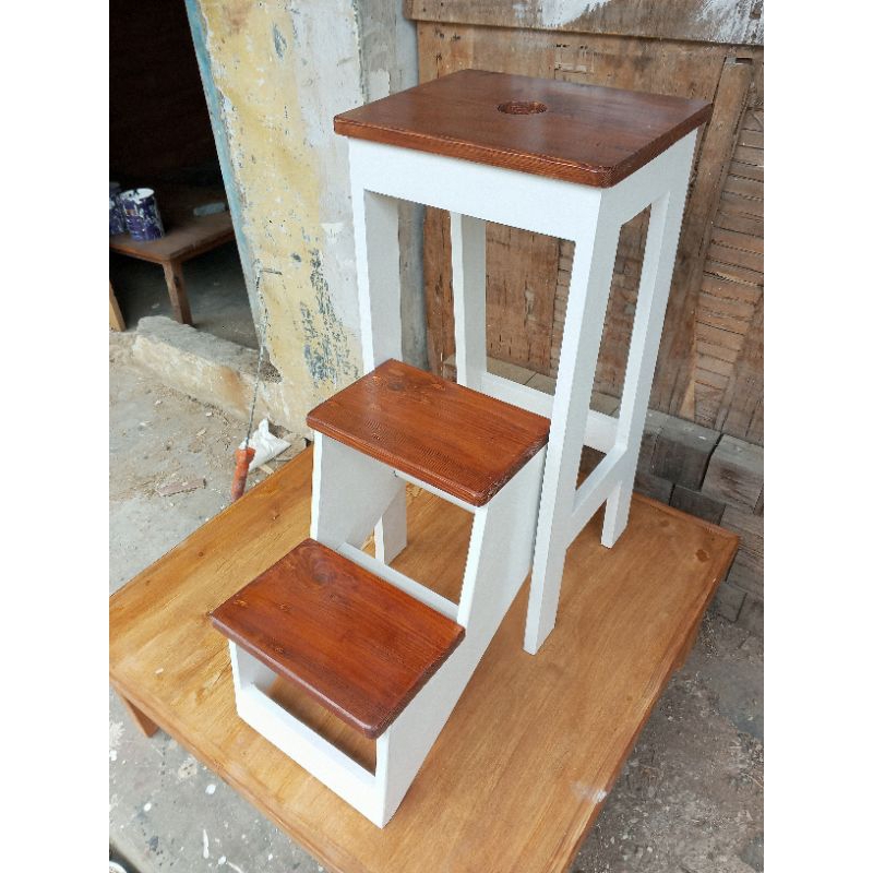 Bangku tangga lipat Kursi serbaguna kayu jati belanda Tinggi 70cm