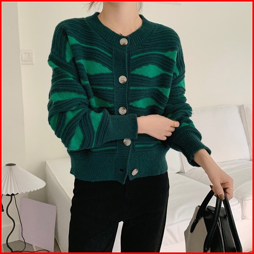 Quirino - Cardigan Rajut Sweater Korean Santai Round Neck Setrip Baju Knitwear Wanita