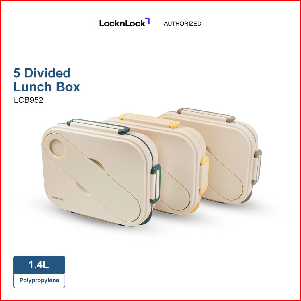 Locknlock Divided Lunch Box To-go Kotak Makan 5 Sekat 1.4l Lcb952