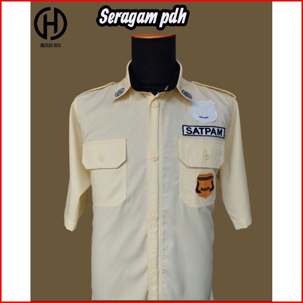 Seragam Security Pdh Krem Berkerah Hitam Terbaru 2025 Baju Satpam Lengan Panjang Cotton Drill Resleting Kancing