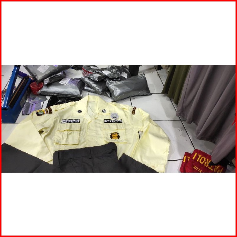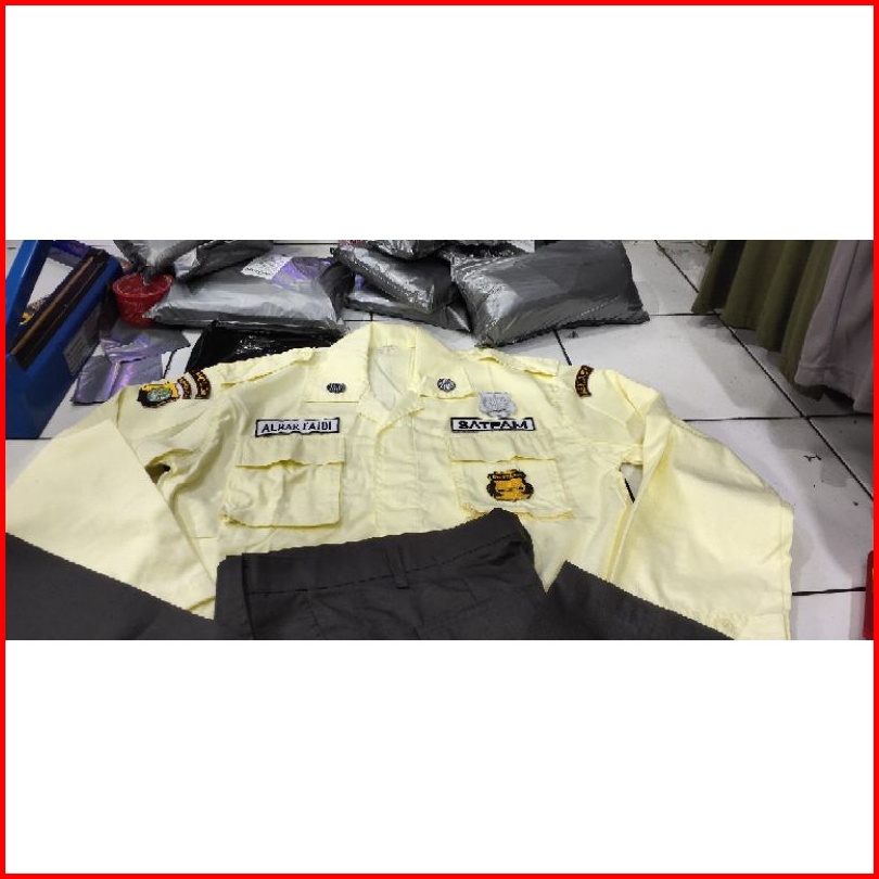 Baju Pdl Satpam Terbaru Plus Bordiran Satu Stel Denggan Celana Baju Pdl Satpam Security Warna Krem
