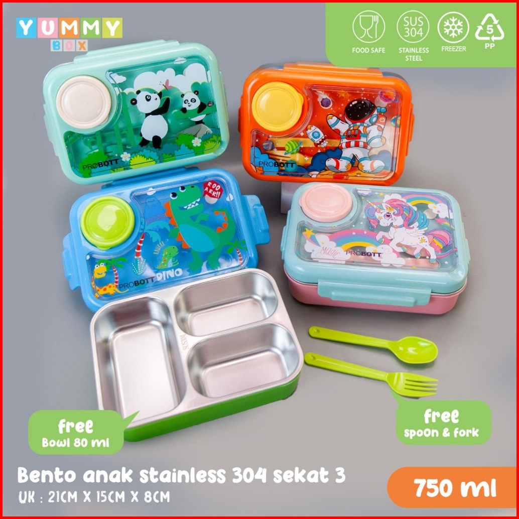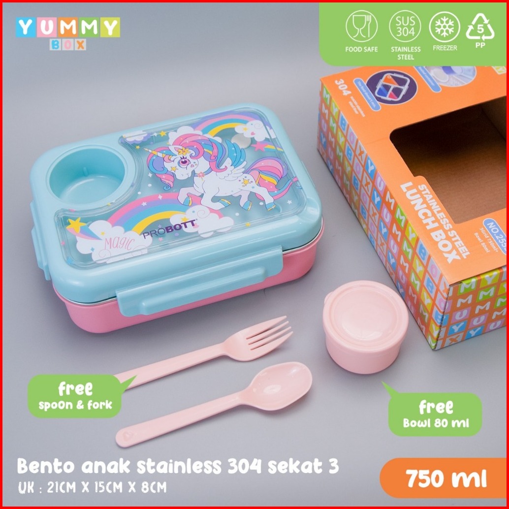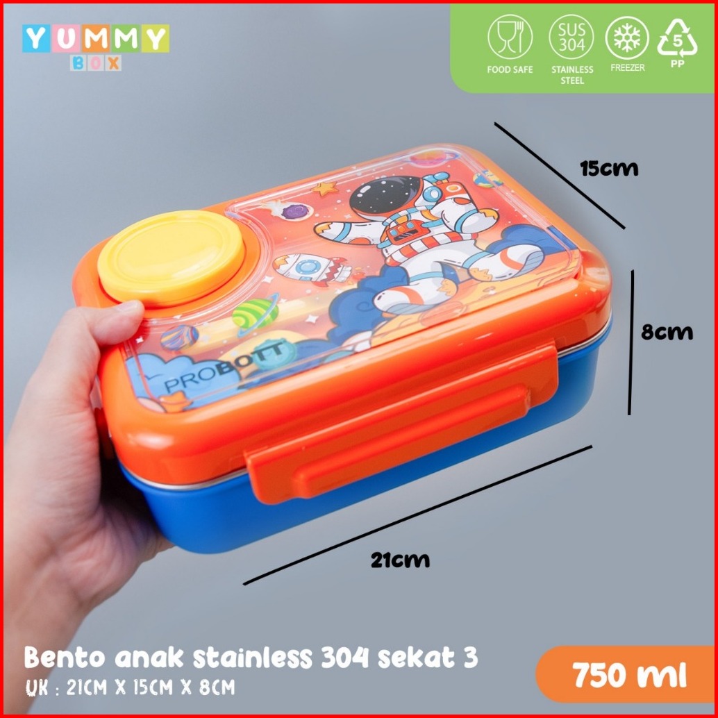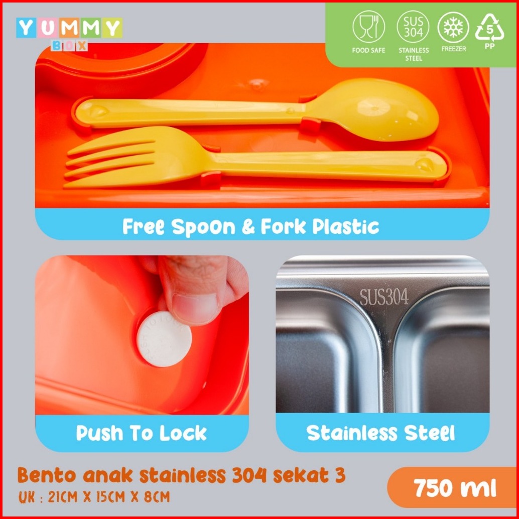 Yummy Box Bento Anak Stainless 304 Sekat 3 Volume 750ml Ym2555