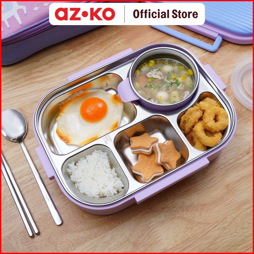 Azko Kris 1.5 Ltr Kotak Makan 4 Sekat Dengan Soup Pot Tas Lunch Box Food Box Kotak Bekal Makan Dengan Insulated Bag Wada