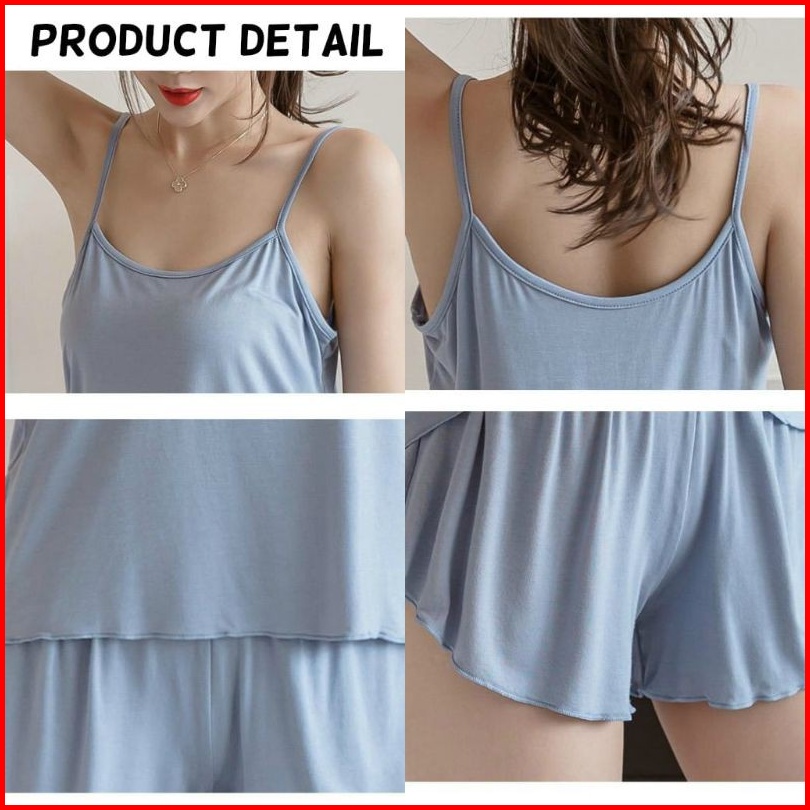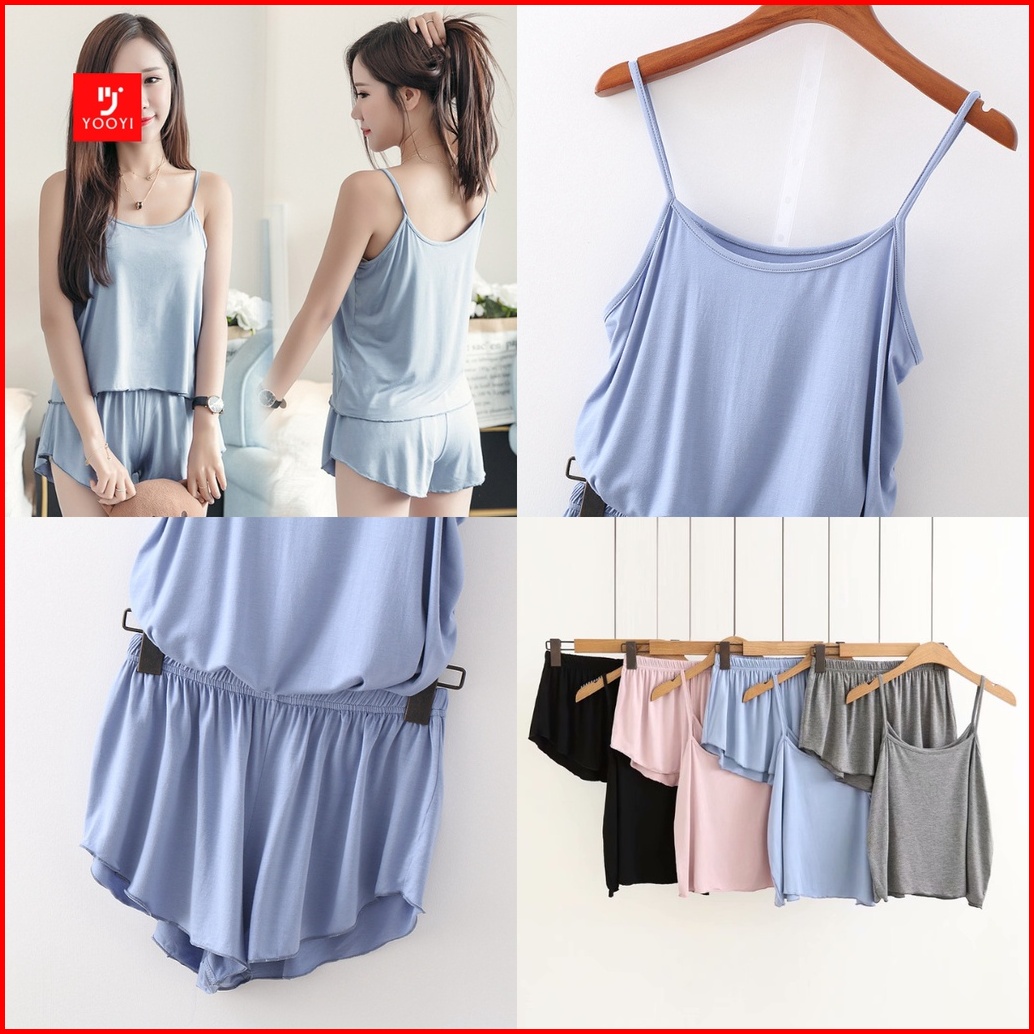 Yooyi Baju Tidur Set Wanita Sexy Camisole Dengan Celana Pendek Piyama Wanita Kamisol Setelan Korea Style Jumbo Sampai Si