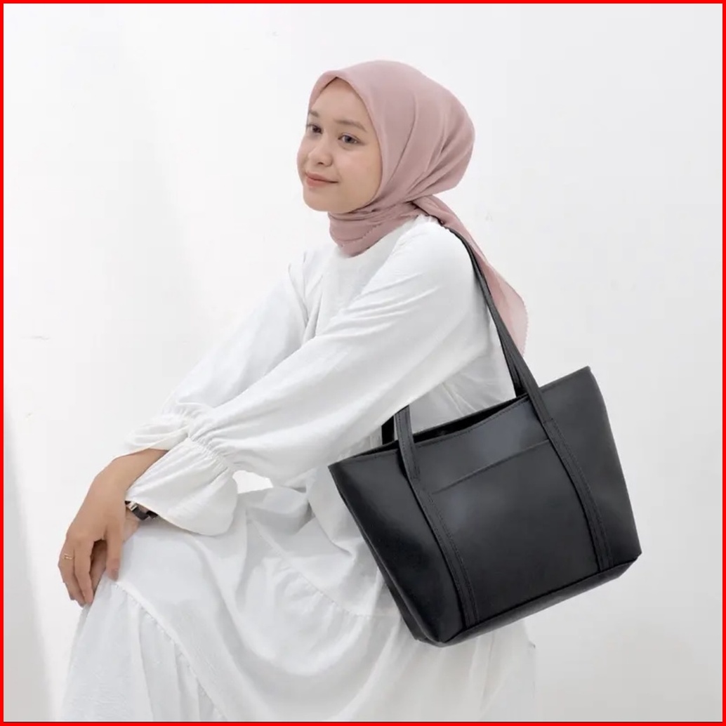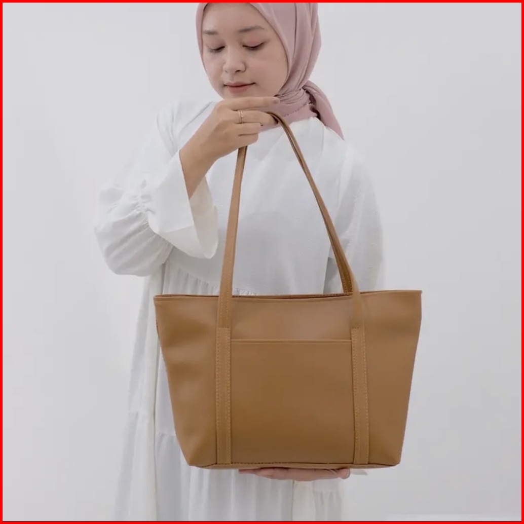 Tas Tote Bag Wanita Kulit - Totebag Kulit Saku Depan - Tas Wanita - Tas Wanita Kekinian 2023 - Tas Pengajian - Tas Bahu