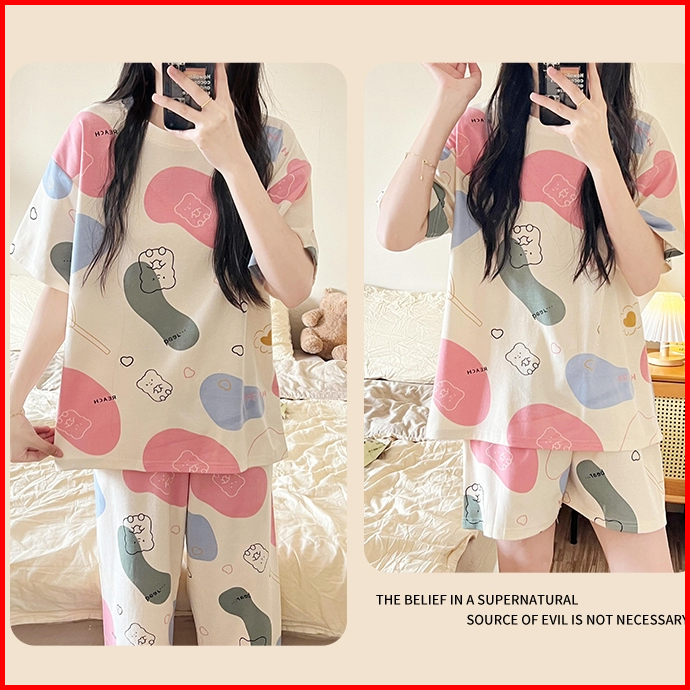 3-5xl Piyama Paket 4in1 Piyama Lengan Pendek Celana Pendek Celana Panjang Dan Daster Baju Tidur Impor Wanita 4in1