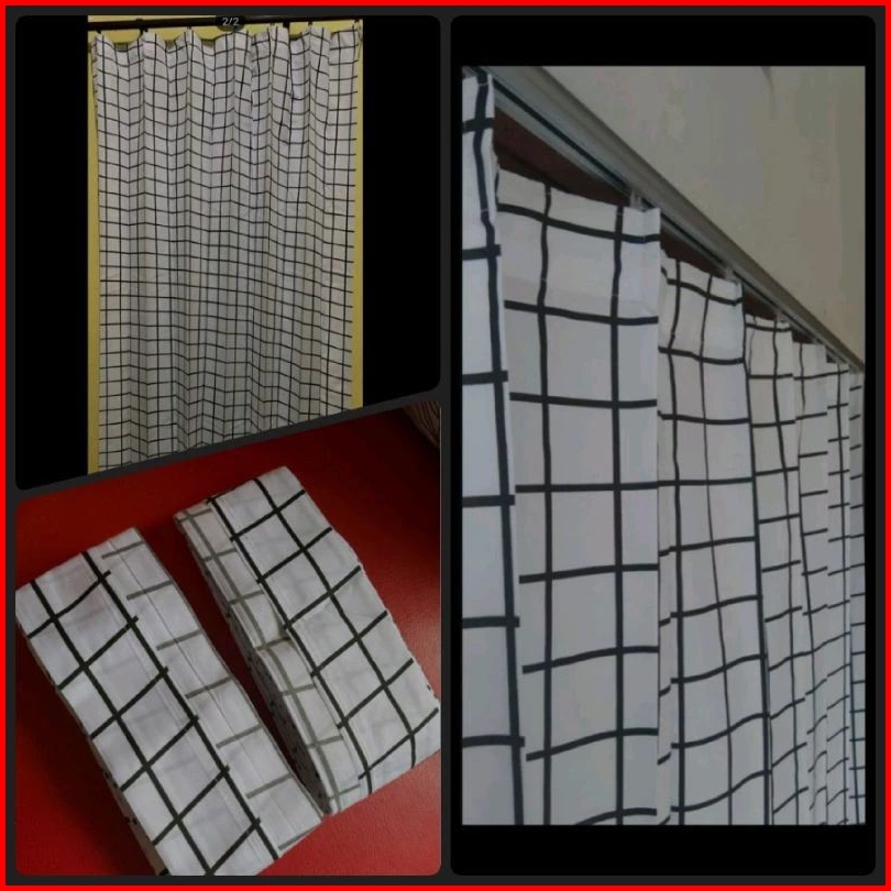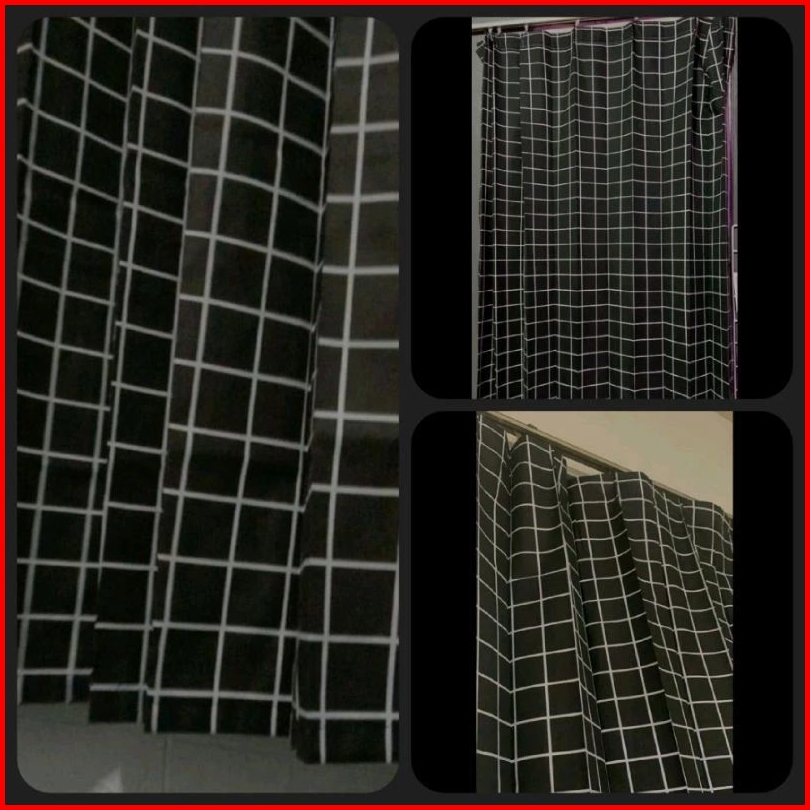 Gorden Jendela Motif Kotak-kotak Hordeng Pintu Tirai Jendela Aestethic Minimalisis Bahan Katun Free Kawat S