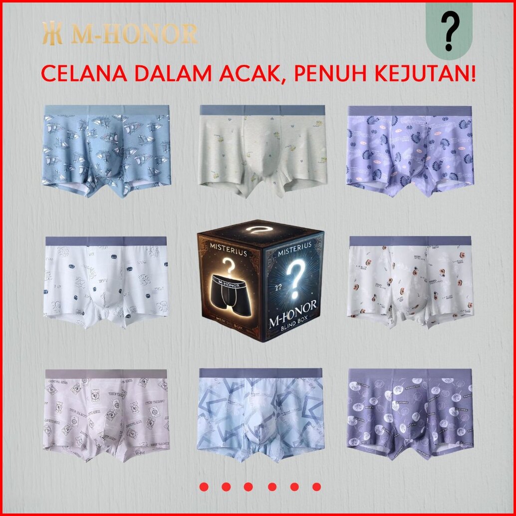 M-honor Celana Boxer Pria Kotak Kejutan 1 3 6 9 12pcs Hadiah Misterius Bahan Modal Ice Silk Nyaman Bernapas Tersedia Ber