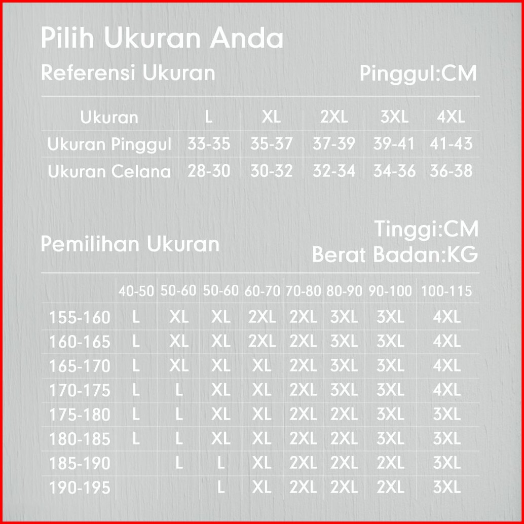 L(45-60KG), XL(60-75KG), 2XL(75-85KG), 3XL(85-100KG)