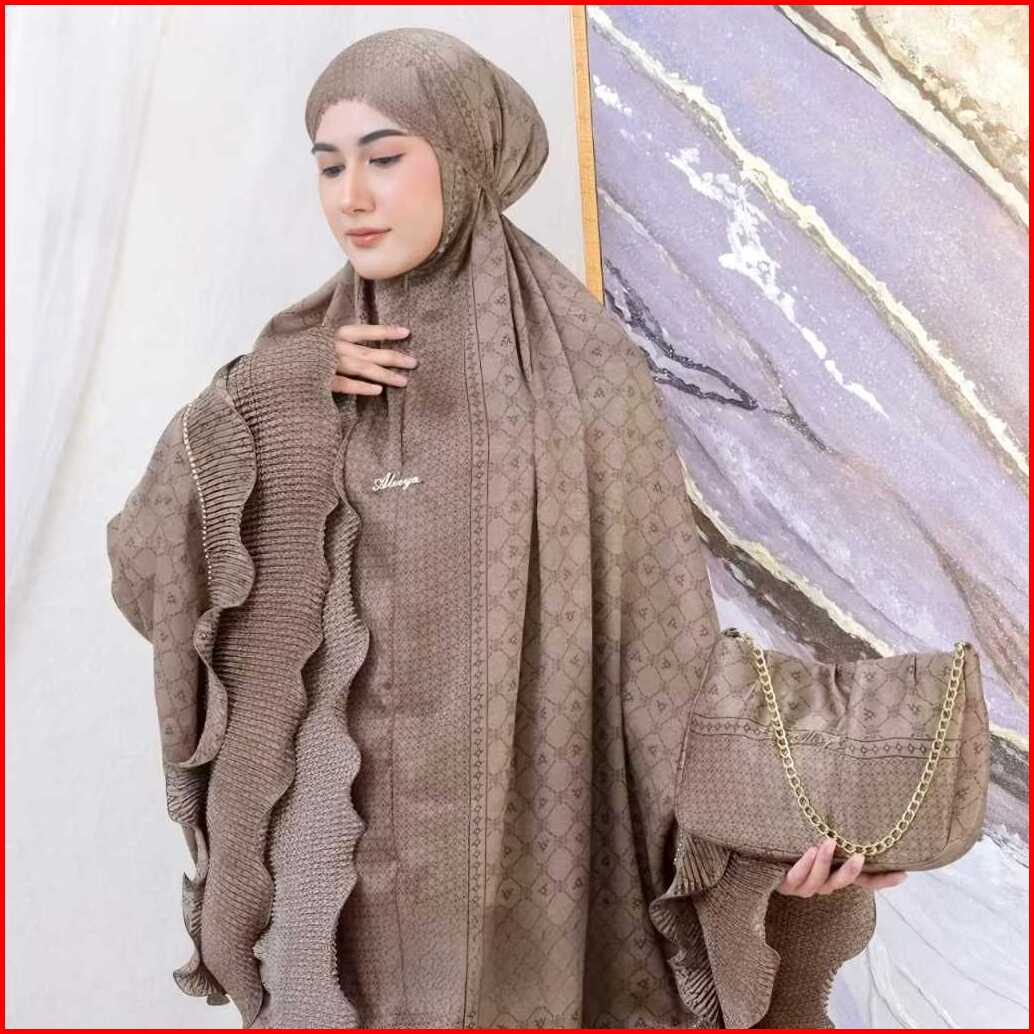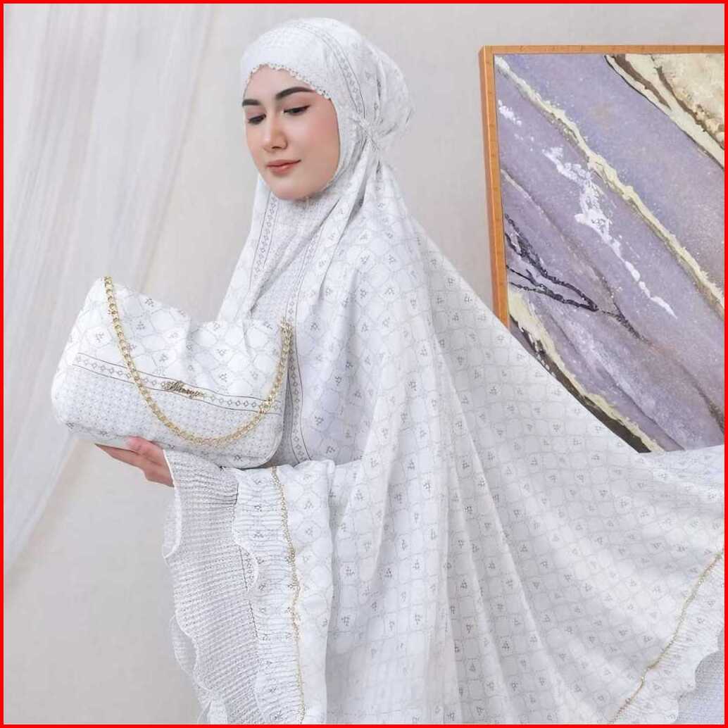 Mukena Dewasa Santorini Silk 2in1 Lasercut Dairah Series Mukena Traveling Premium Tas Mewah