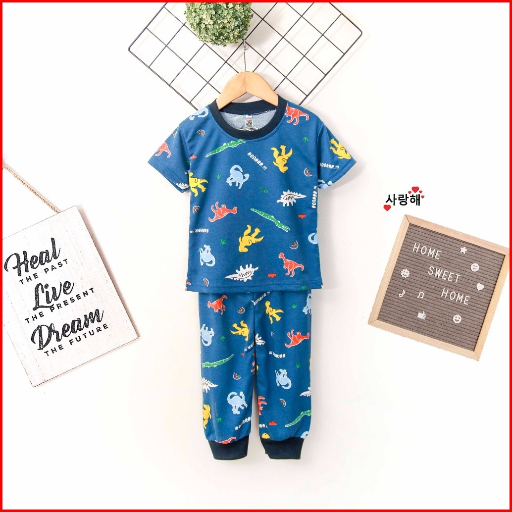 Foya Kids - Setelan Baju Premium Anak Laki - Laki Perempuan Setelan Motif Full Gambar Usia Bayi - 6 Tahun Setelan
