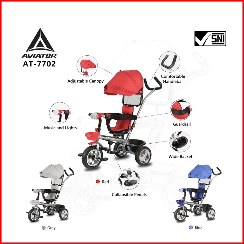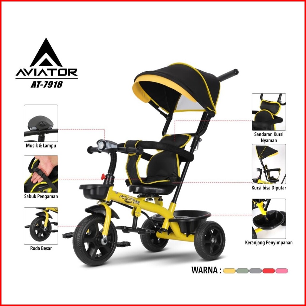 Sepeda Anak Roda Tiga Baby Stroller Aviator At 7702 7711 7705 Exotic Et1259-1 Rotor Musik Bmx Tricycle At7702 At7705 At7