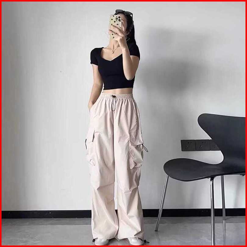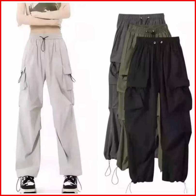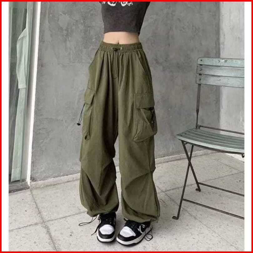 Celana Kargo Panjang Wanita Highwaist Jumbo Premium Bahan American Dril M L Xl Xxl Ootd Korean Style
