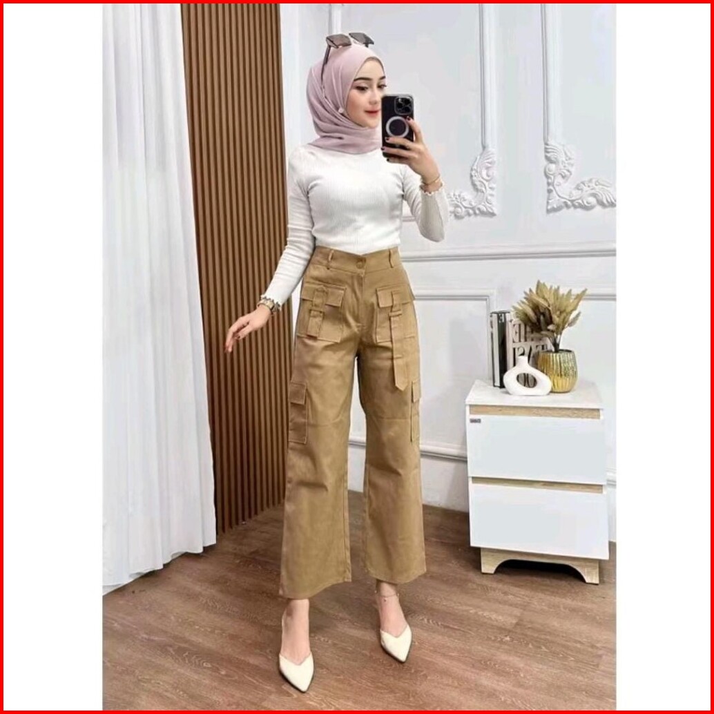 Celana Yura Cargo Highwaist Cargo - Kulot Cargo Wanita Celana Panjang - Baggy Pants