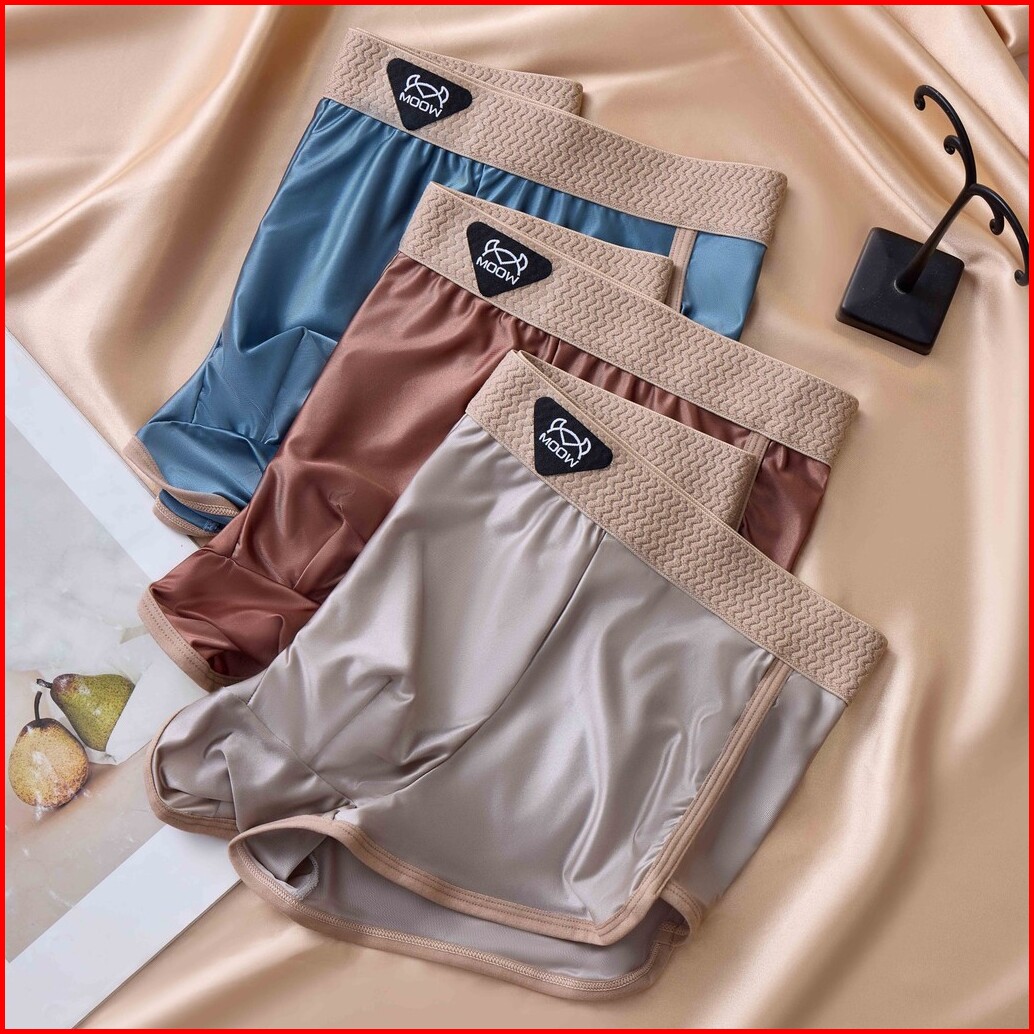 Moow Paket 3pcs Celana Dalam Boxer Pria Shiny Premium Icesilk Lembut Antibakteri 7a Mp62
