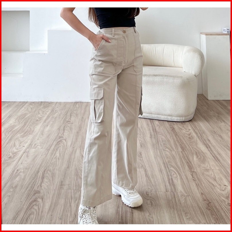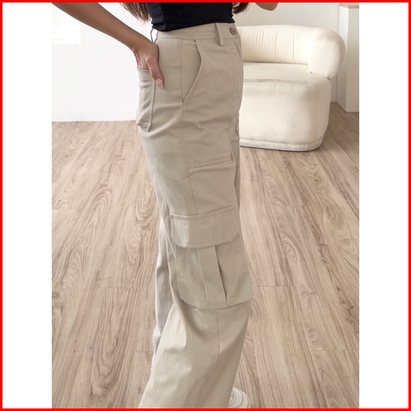 Celana Cargo Panjang Wanita Premium Highwaist Korean Style Kargo Pants Kekinian Murah Terbaru