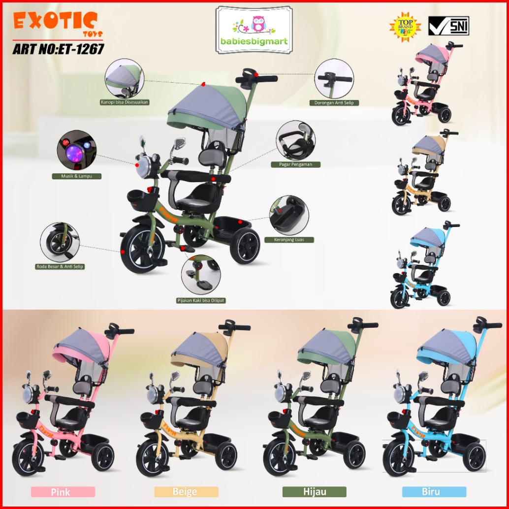 Sepeda Anak Roda 3 Tiga Tricycle Exotic Aviator Et 1262 1263 1267 1268 1269 2251 At 7711 At 7713 At 7717 115 Pmb T15 T 2