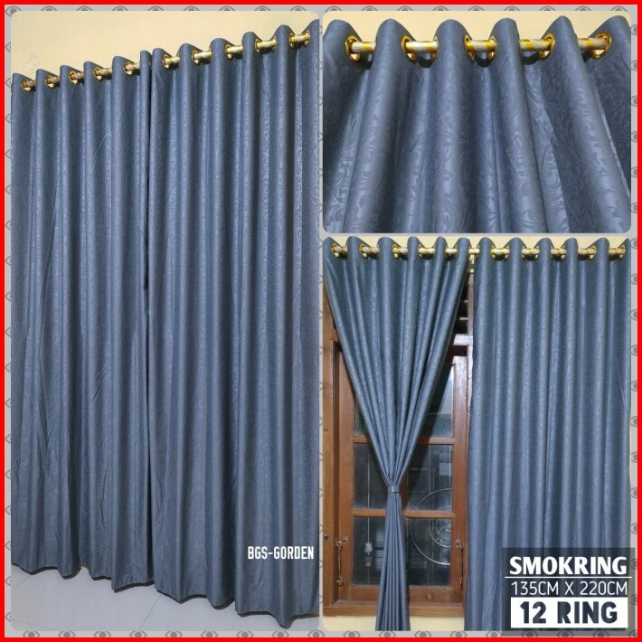 Gorden Smokring Ring 12 Pintu Dan Jendela Gorden Embos Polos Free Tali