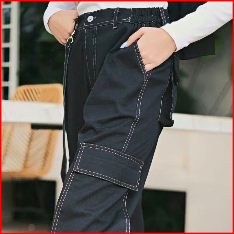 Amber Chino Cargo Wanita Celana Korea Cewek Terbaru Baggy Kulot