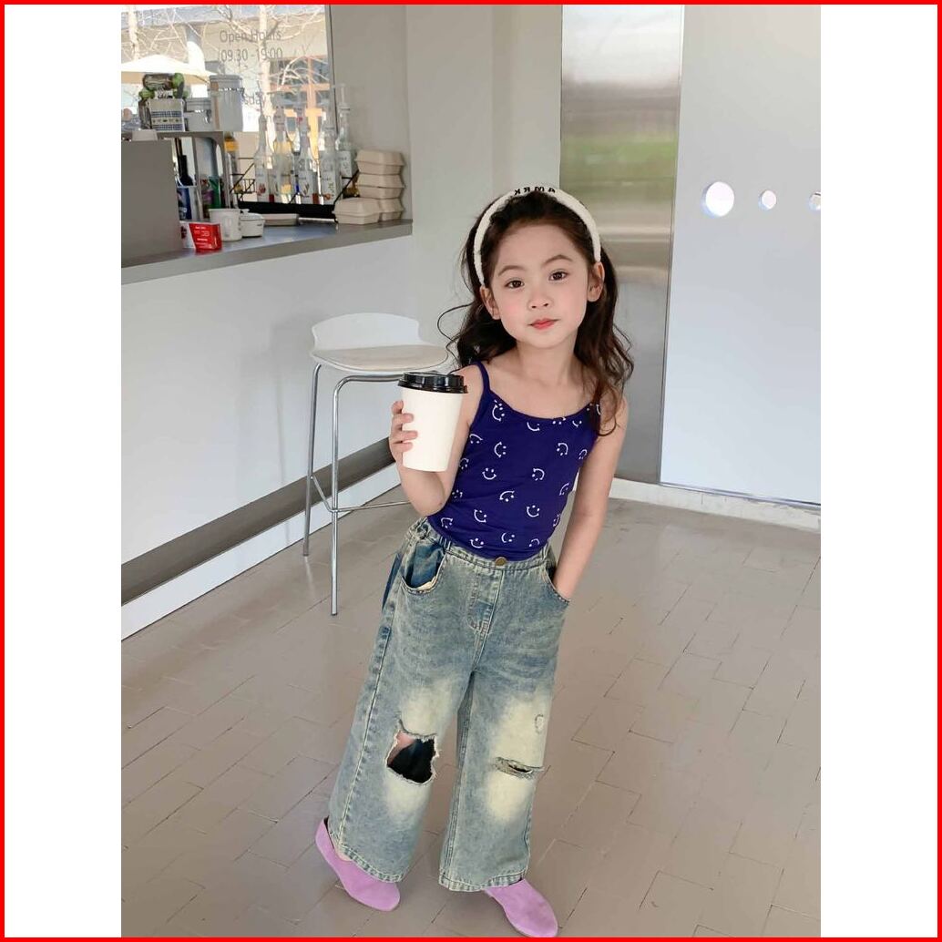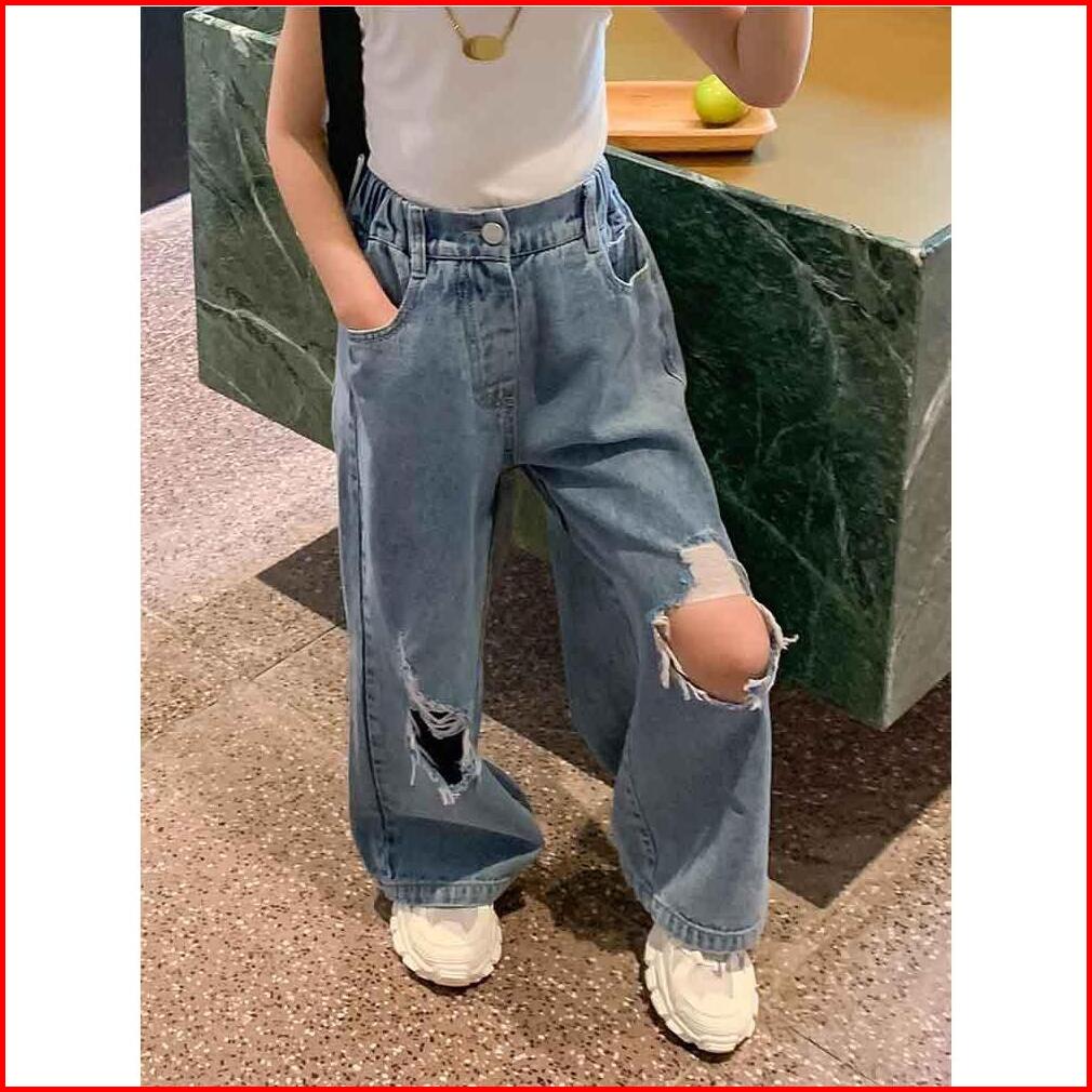 507243 - Celana Kulot Jeans Sobek Anak Perempuan - Motif Ripped Jeans