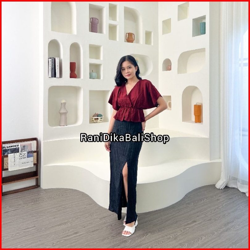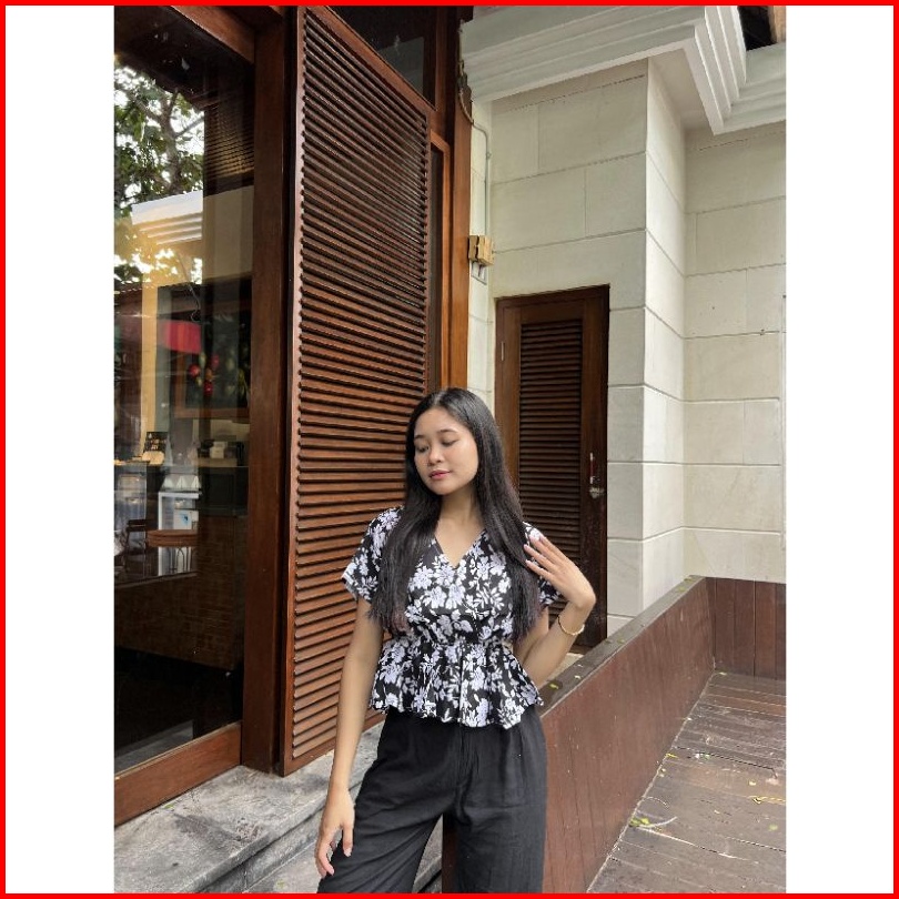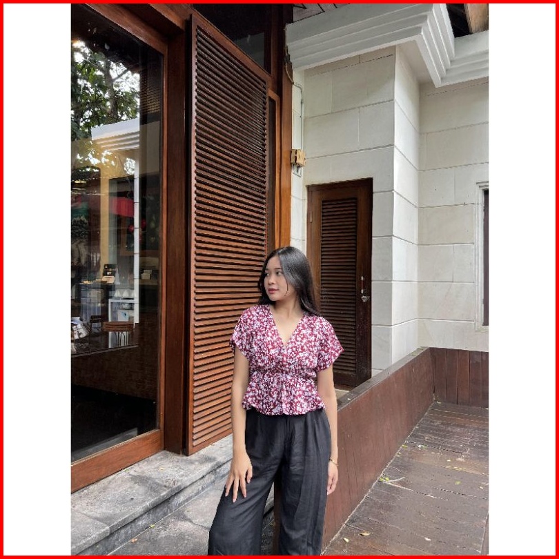 Floral Blouse Bahan Rayon Premium - Atasan Korean Style V-neck - Atasan Wanita - Baju Wanita