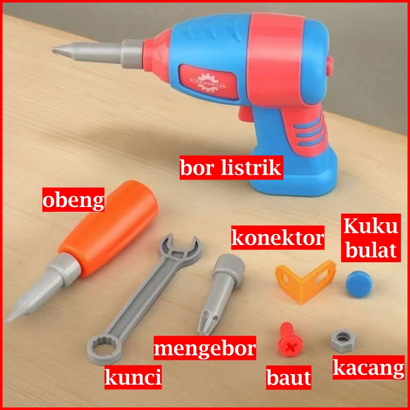 Snpazy Koper Mainan Tool Set 229pcs Mainan Edukasi Anak Diy 3d Mainan Sekrup Anak Dengan Bor Listrik
