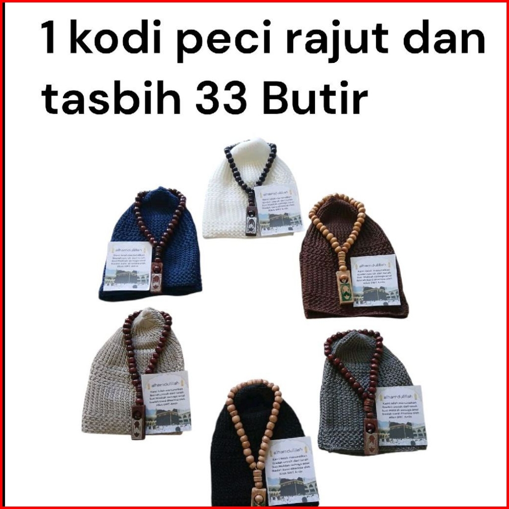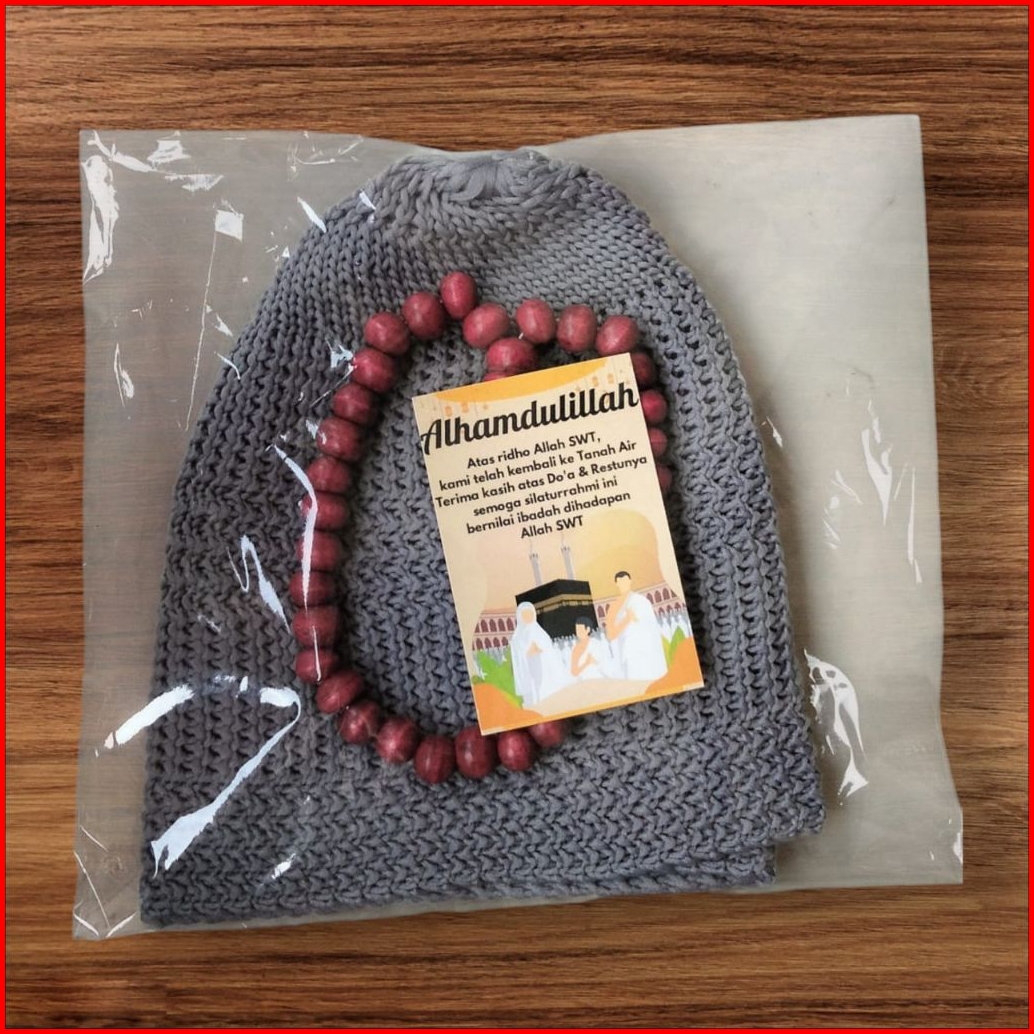 1 Kodi - 20 Paket Oleh - Oleh Haji Dan Umroh 20 Pcs Peci Rajut Dewasa 20 Pcs Tasbih 33 Butir Free Kartu Ucapan