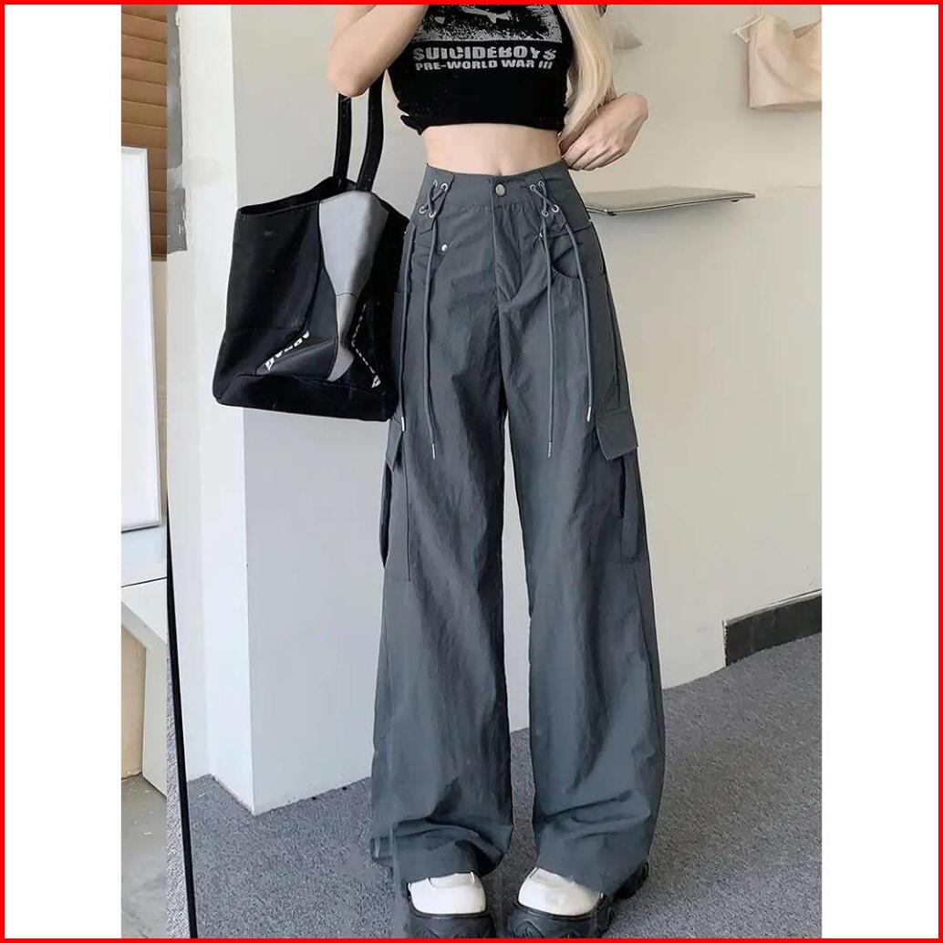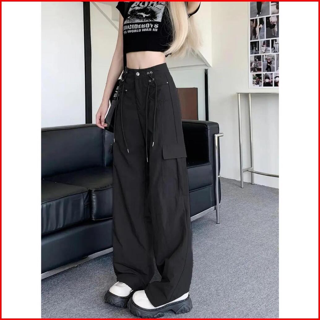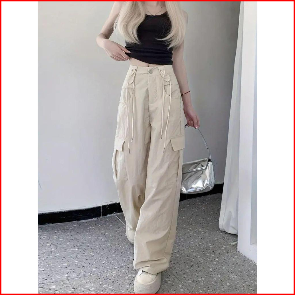 Fro - Cargo Pants Reggie Cross Hem Highwaist Celana Loose Pants Wanita Cargo Celana Cargo Wanita
