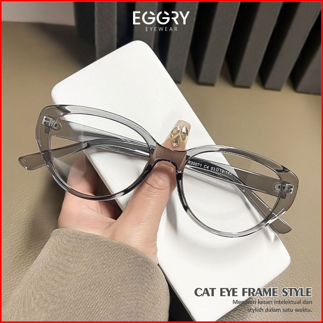 Eggry Eyewear Kacamata Photocromic Minus Lensa Anti Radiasi Anti Blueray Model Cat Eye Fashion Pria Wanita Terbaru Mater