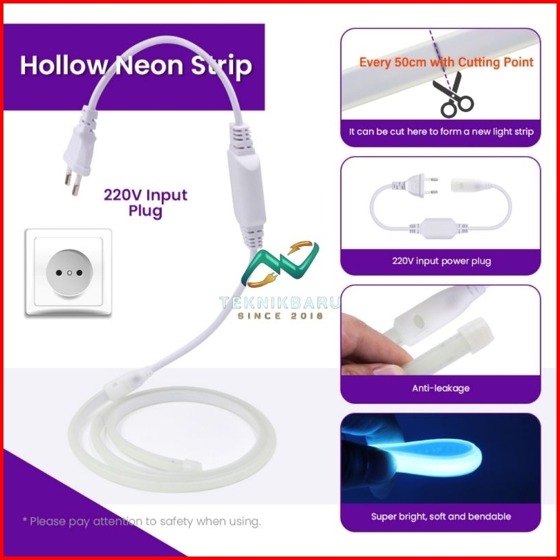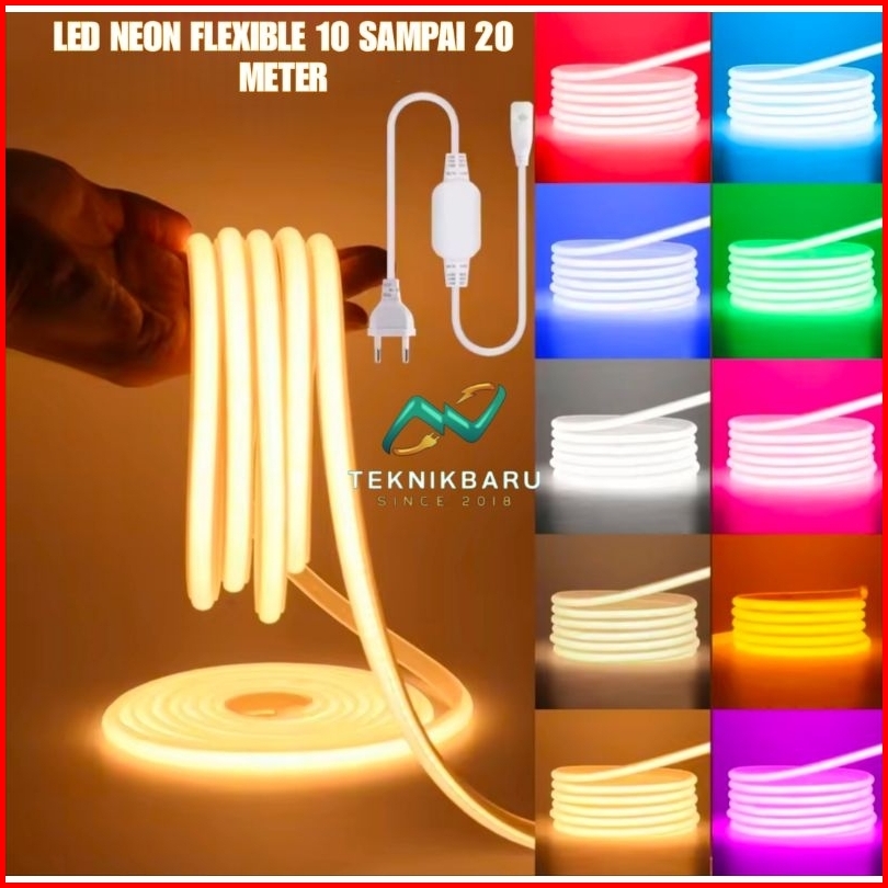 Lampu Neon Flex 220v 10-20 Meter Soket Dekorasi Plafon Kamar Taman Caf Neon Strip Led
