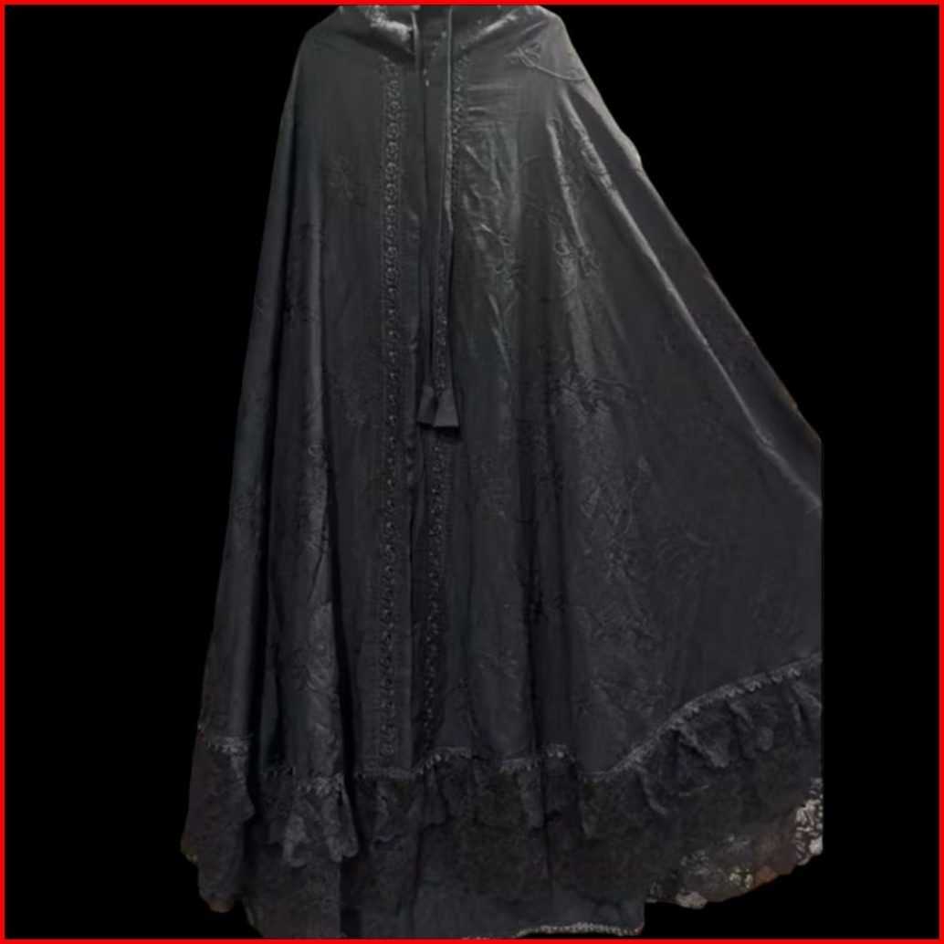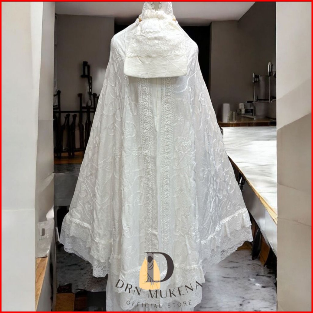 Drn- Mukena Mewah Katun Linen 2 In 1 Renda Susun Import Putih Hitam