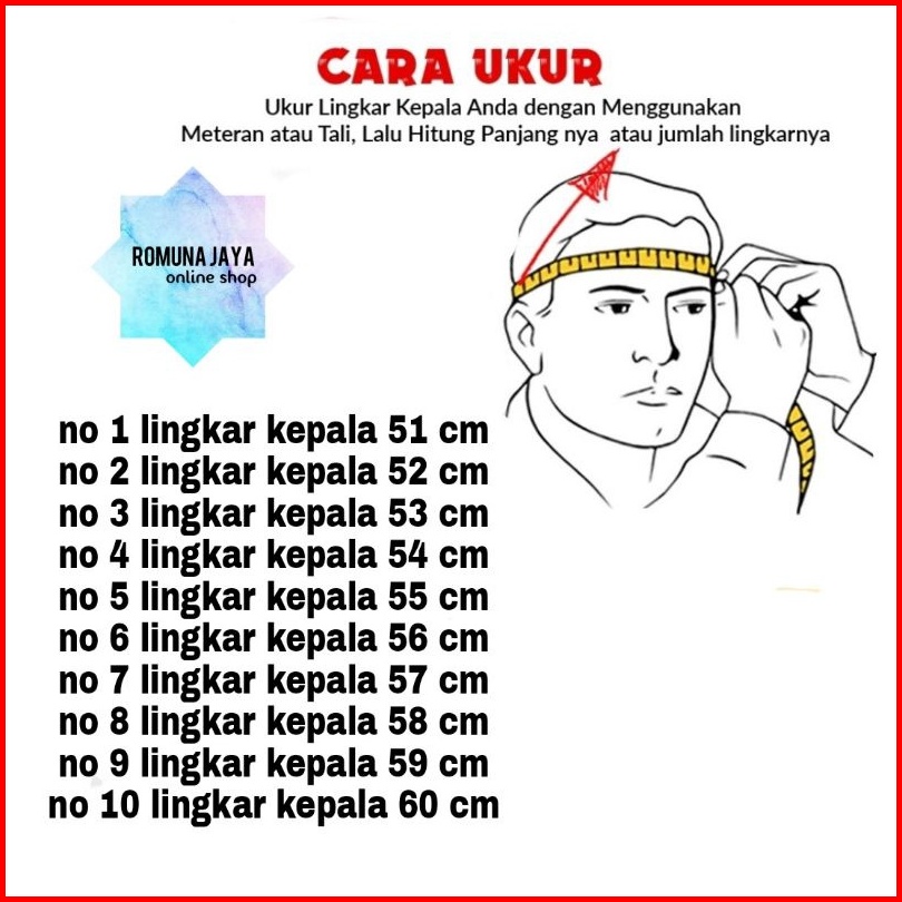 No 4 lingkar 54(20½), No 5 lingkar 55(21), No 6 lingkar 56(21½), No 7 lingkar 57(22), No 8 lingkar 58(22½), No 9 lingkar 59(23), No 10 lingkar60(23½), No 3 lingkar 53 cm