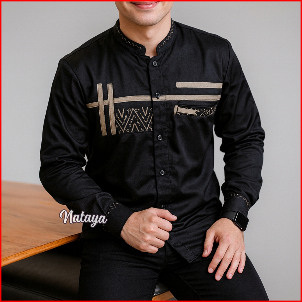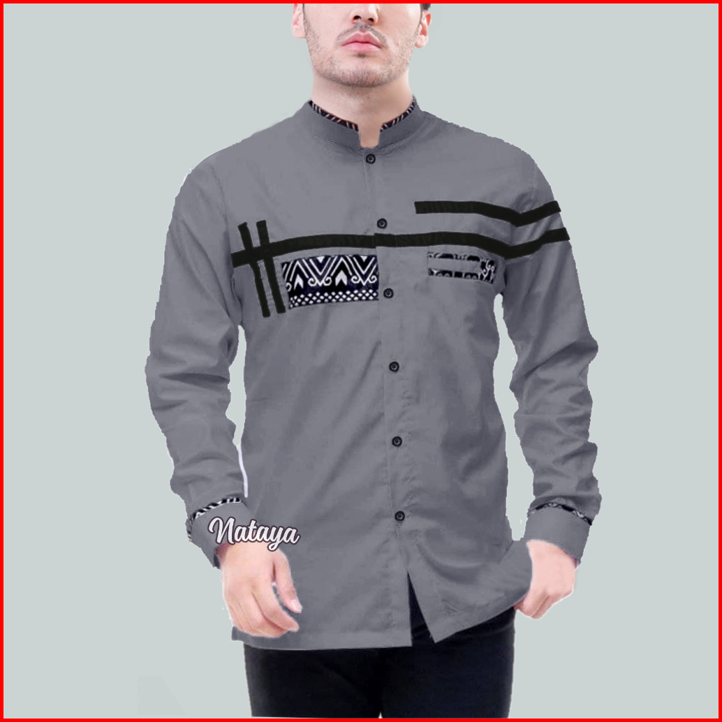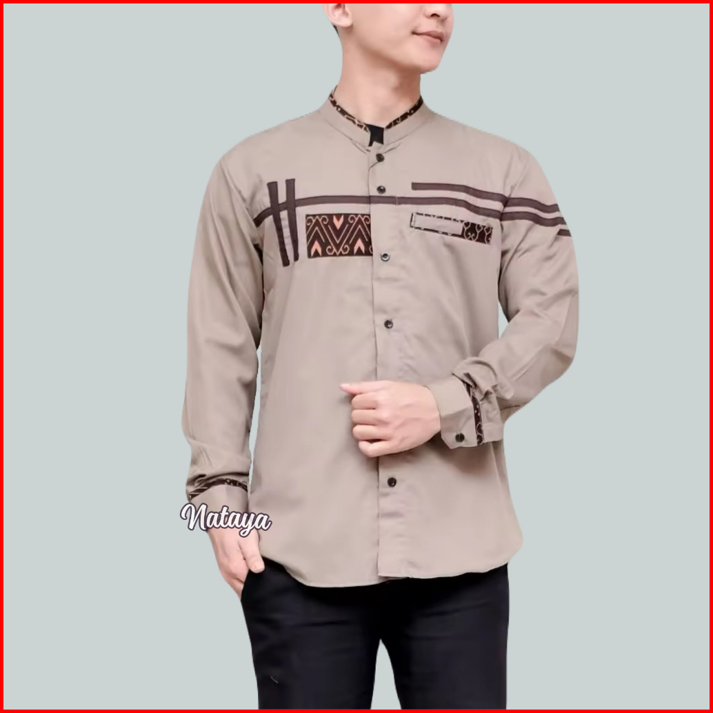 Baju Koko Pria Lengan Panjang Kombinasi Batik Motif Zoled Kombinasi Batik Bahan Katun Toyobo Premium