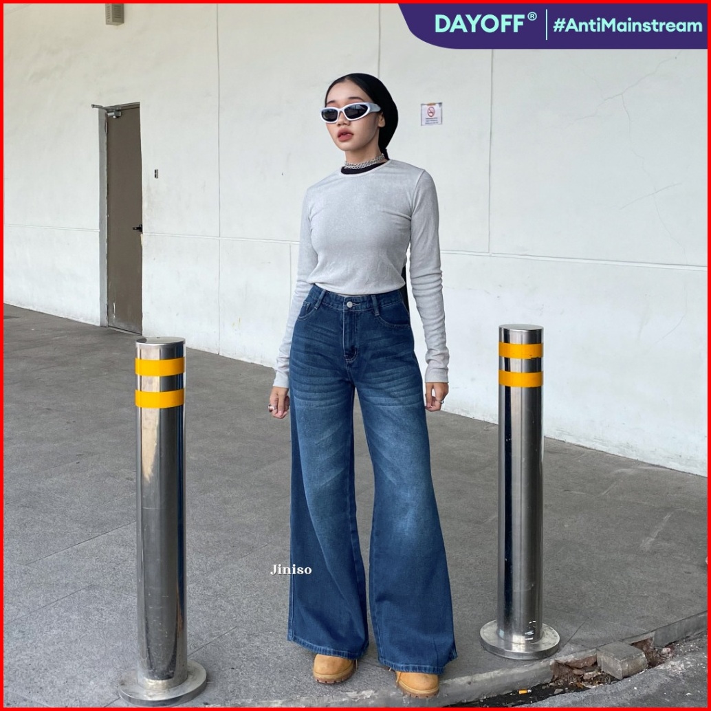 Jiniso - Highwaist Flare Cutbray Jeans 376 Dayoff