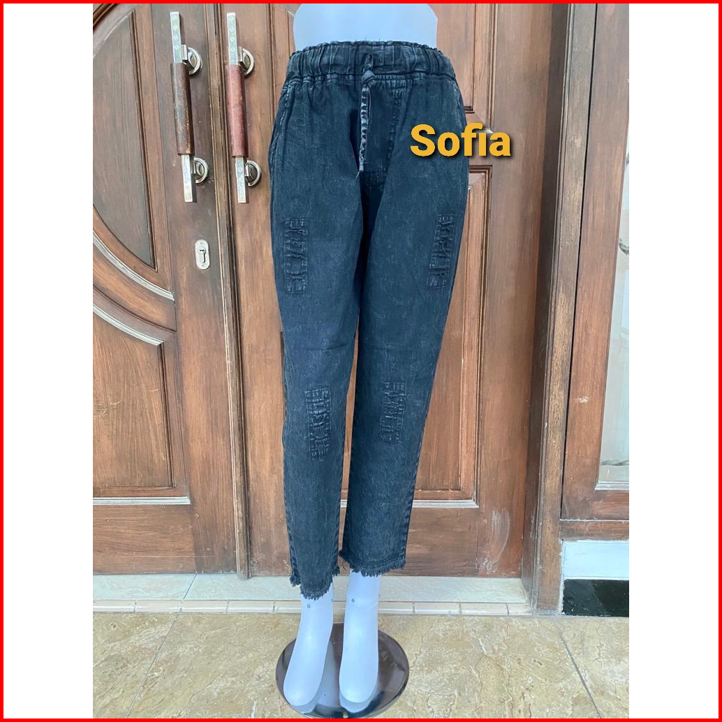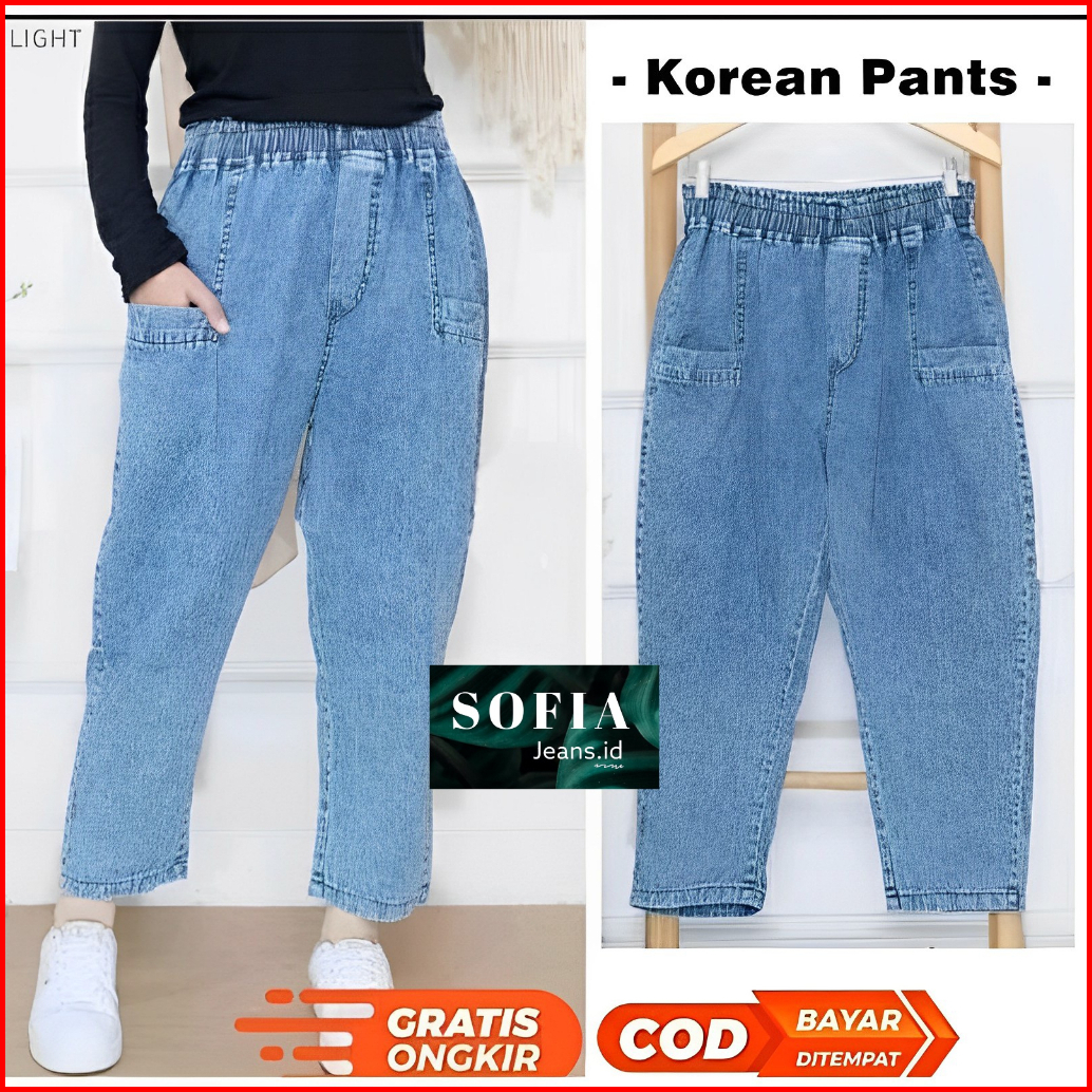 Sofia Celana Baggy Pants Jeans Wanita Pinggang Karet Size Standar Dan Jumbo Baggy Jeans