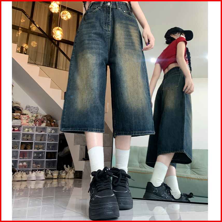Stok Siapvintage Biru Pants Jumbo Celana Jenas Panjang Wanita Celana 7 8 Kulot Baggy Jeans Wanita Hw Celana Korea Pants
