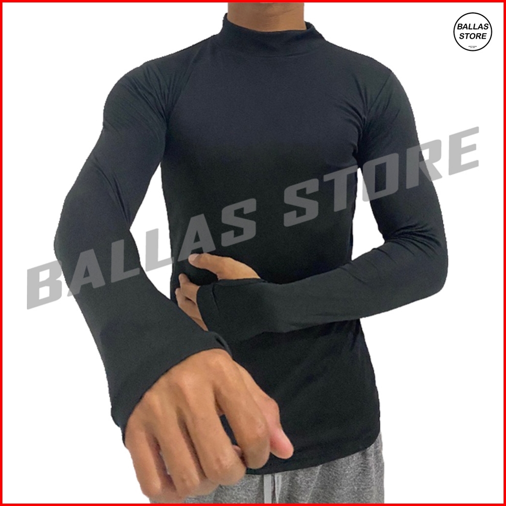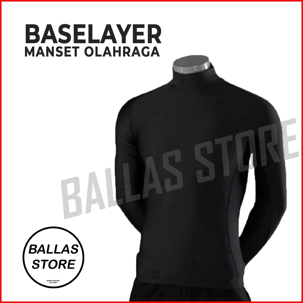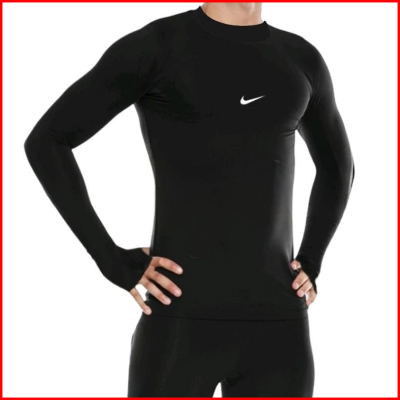 Baselayer Manset Pria Tangan Panjang Pakaian Olahraga Lari Futsal Voli Badminton Sepeda Renang Gym
