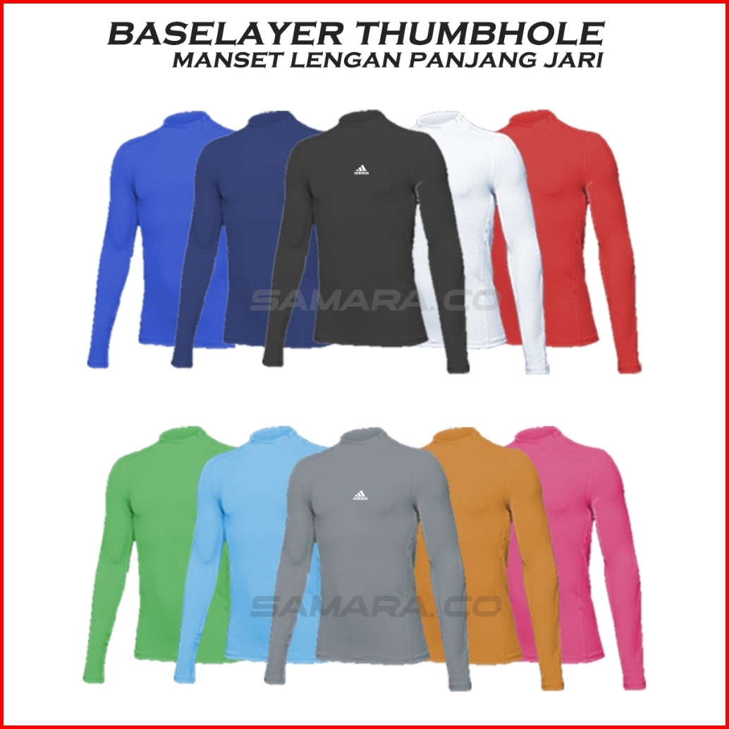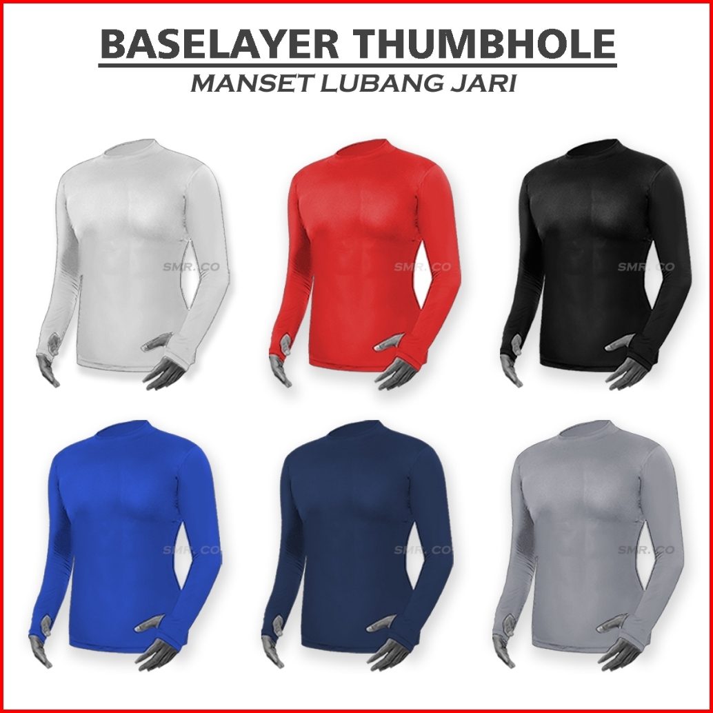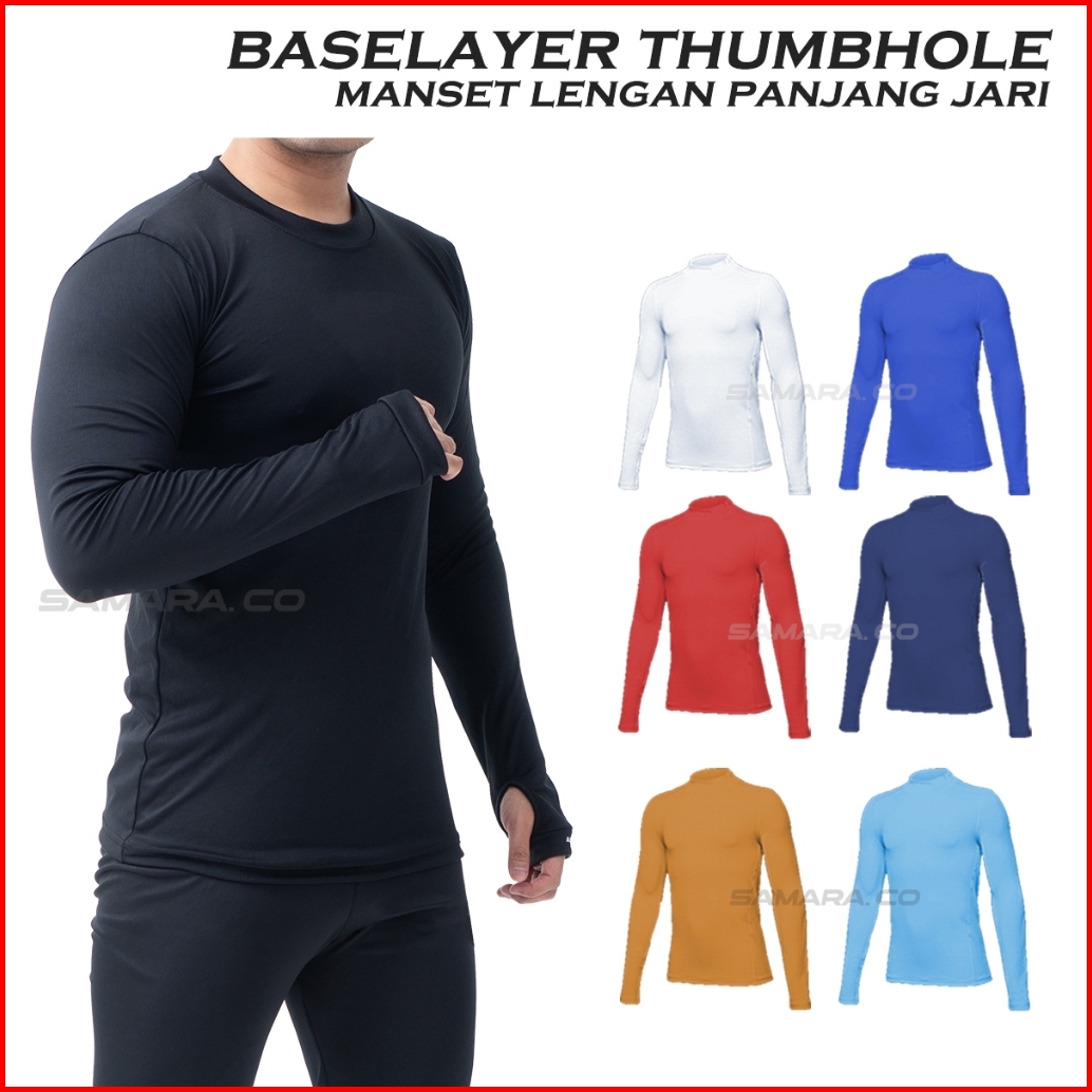 Baselayer Lengan Panjang Lubang Jari Thumbhole Manset Atasan Pria Olahraga Sepakbola